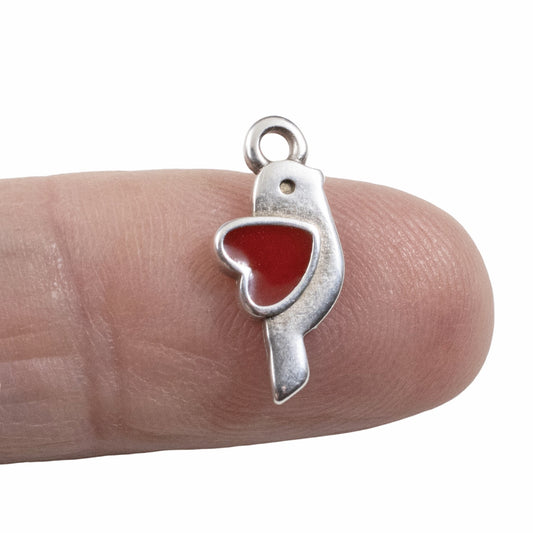 Silver Bird Heart Charms: Antique Silver Red Enamel Martaki Pendant 4-Pack