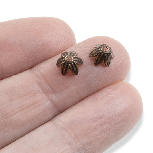 Daisy Bead Caps 6mm Antique Copper-Plated Pewter: 6Pcs Floral Findings USA Made