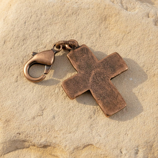 Copper Distressed Cross Clip-On Charm Purse Bag Keychain Faith Boho