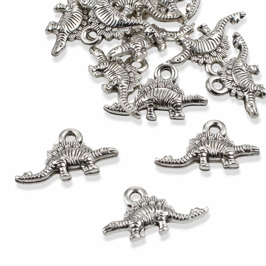 Tiny Dinosaur Charms 25-Pack, Antique Silver Metal Pendants, Whimsical Jewelry Supply