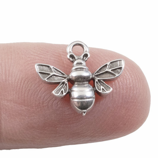 Silver Bee Charms: Antique Silver Honey Bee Pendant Jewelry Supply 6-Pack
