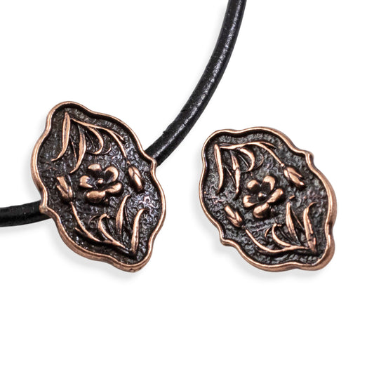 Copper Flower Button Clasp: Antique Copper Leather Cord Closure 2-Pack