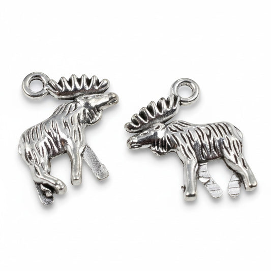 Moose Elk Charms 10-Pack Silver Metal Pendants Wildlife Outdoor Nature Supplies
