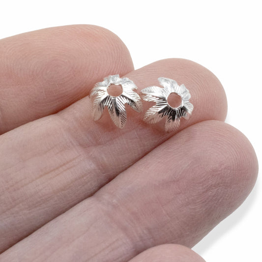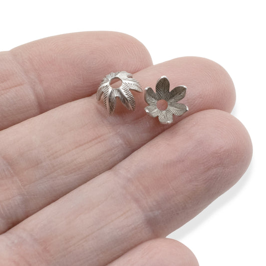 Daisy Bead Caps 8mm Sterling Silver-Plated Pewter: Floral Metal Findings USA Made 4-Pack Jewelry Making