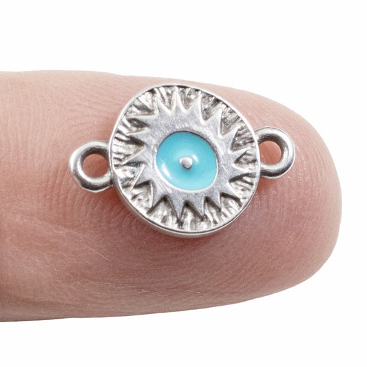Silver Evil Eye Connector Charms: Antique Silver Aqua Enamel Round Links 4-Pack