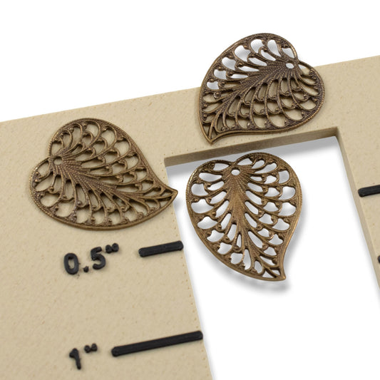 Filigree Leaf Charms: Natural Brass Vintaj Open Lace Earring Drops 4-Pack
