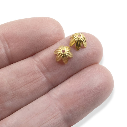Daisy Bead Caps 6mm Antique Gold-Plated Pewter: 6Pcs Floral Findings USA Made