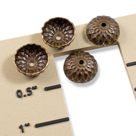 Acorn Bead Caps 13mm: Natural Brass Sunflower Design 4-Pack