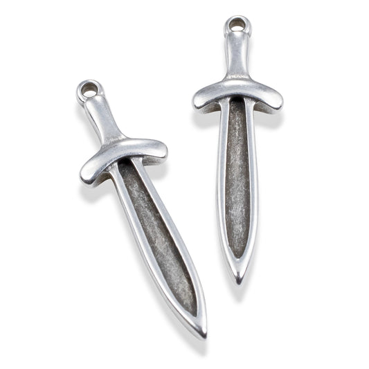 Sword Dagger Charms: 4Pcs Antique Silver Pendants, Medieval Fantasy DIY Jewelry