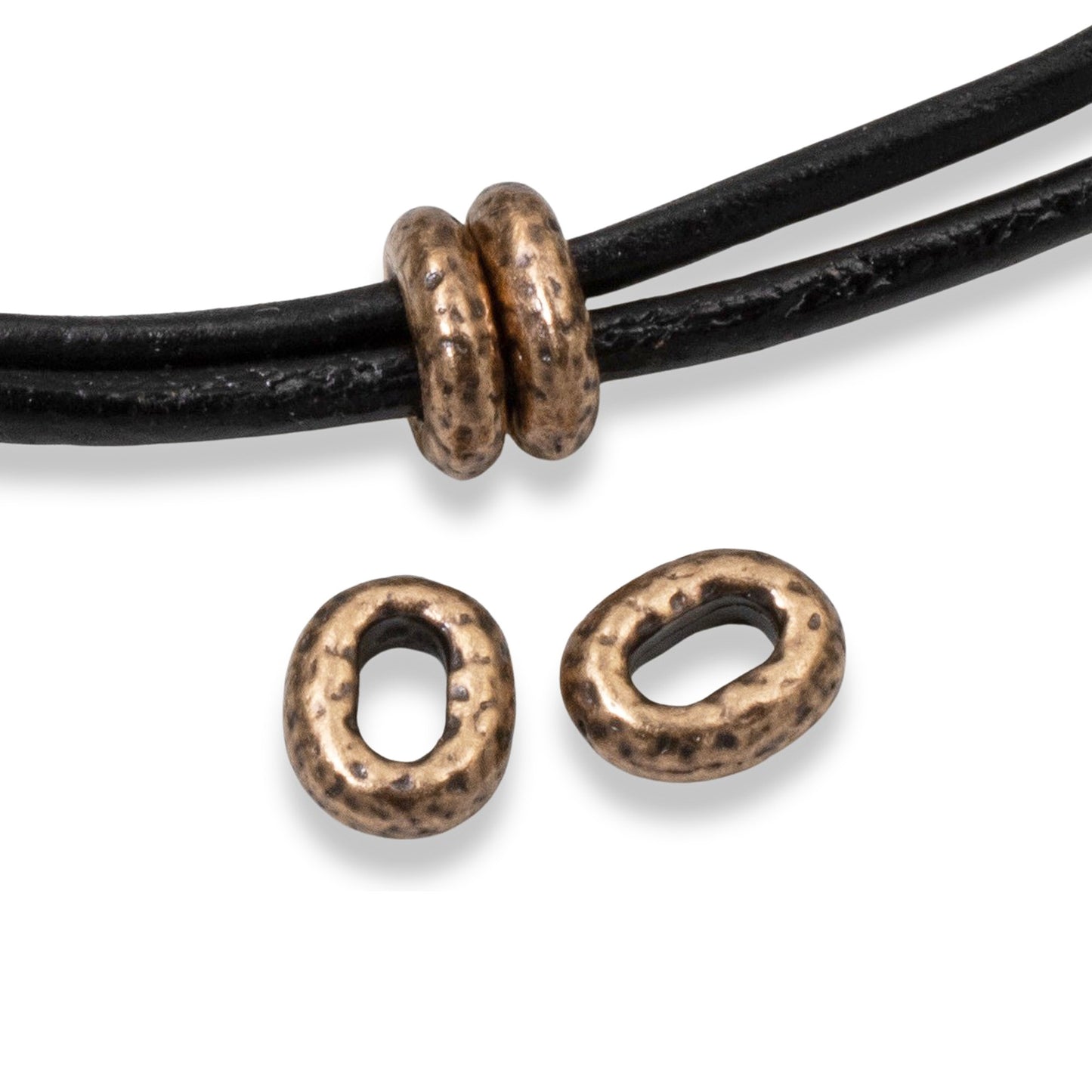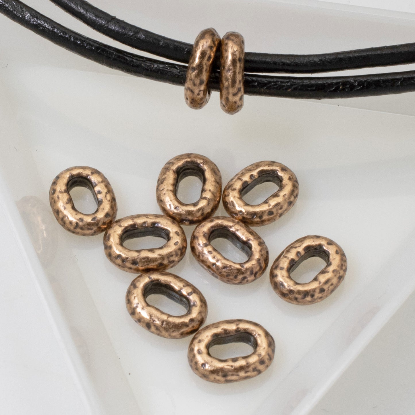 10 Antique Copper Distressed Oval Beads, Leather Cord Beads, TierraCast Design