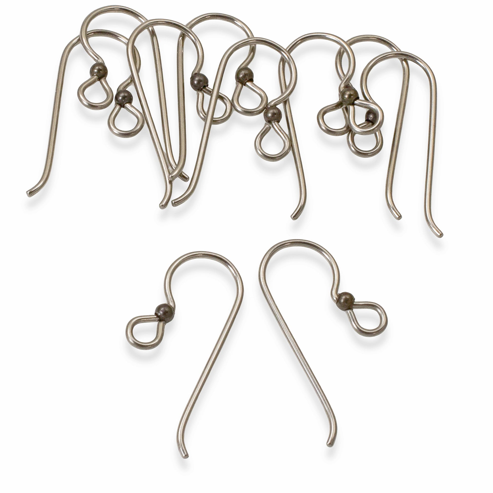 10 Gray Niobium Earring Hooks + 2mm Black Bead Accent - Hypoallergenic