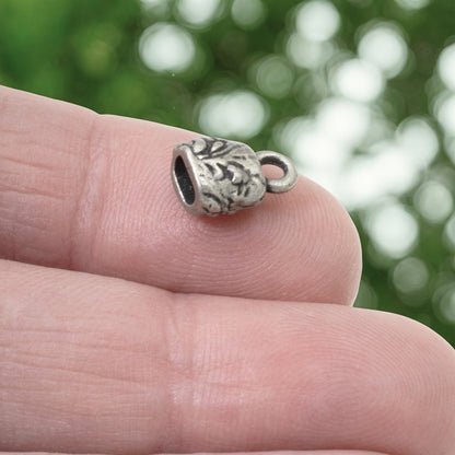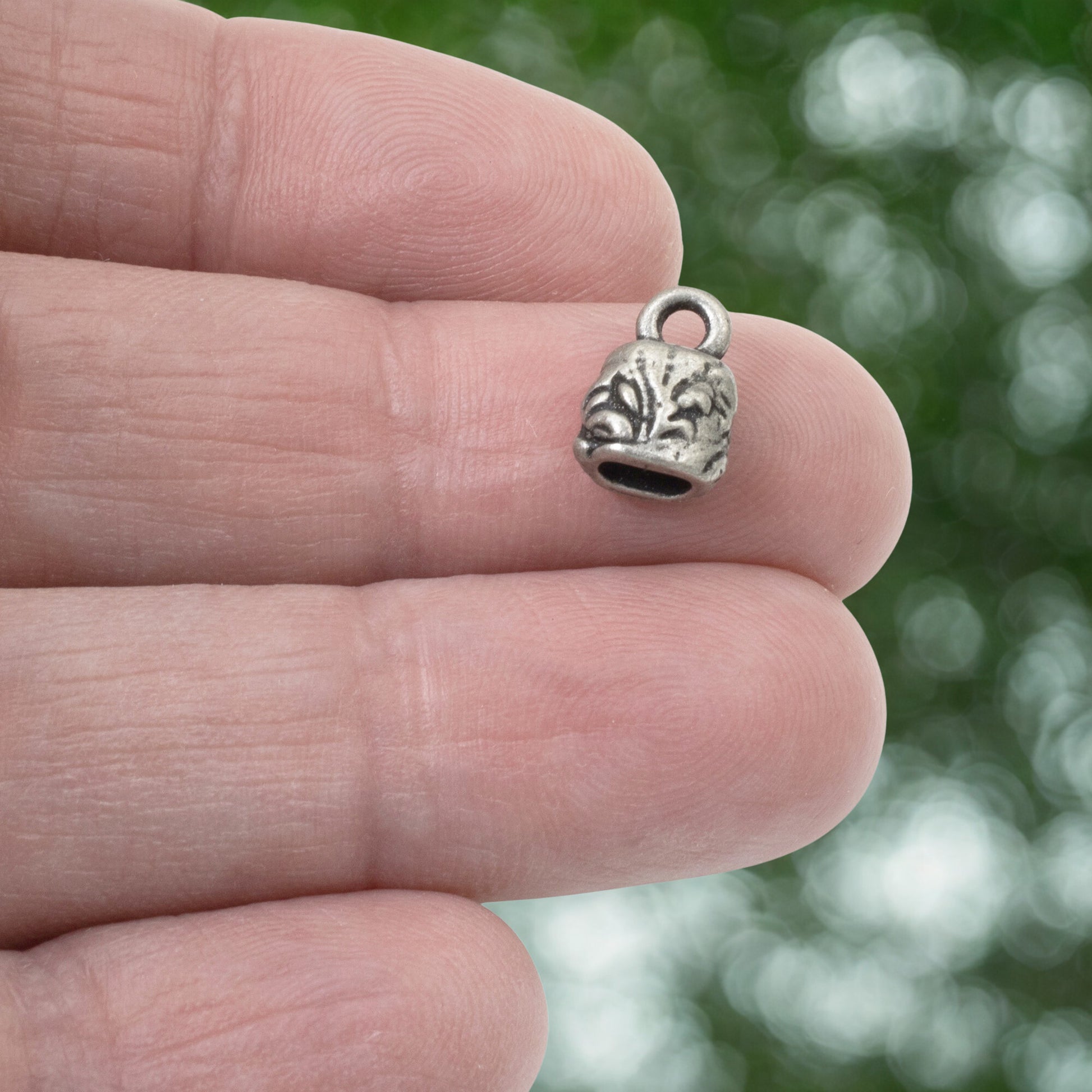 Pewter Leather Cord Ends 10-Pack, Garden Design Crimp End Caps, 4x2mm Opening Cord Finishing, Jewelry Making Supplies
