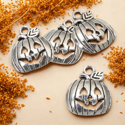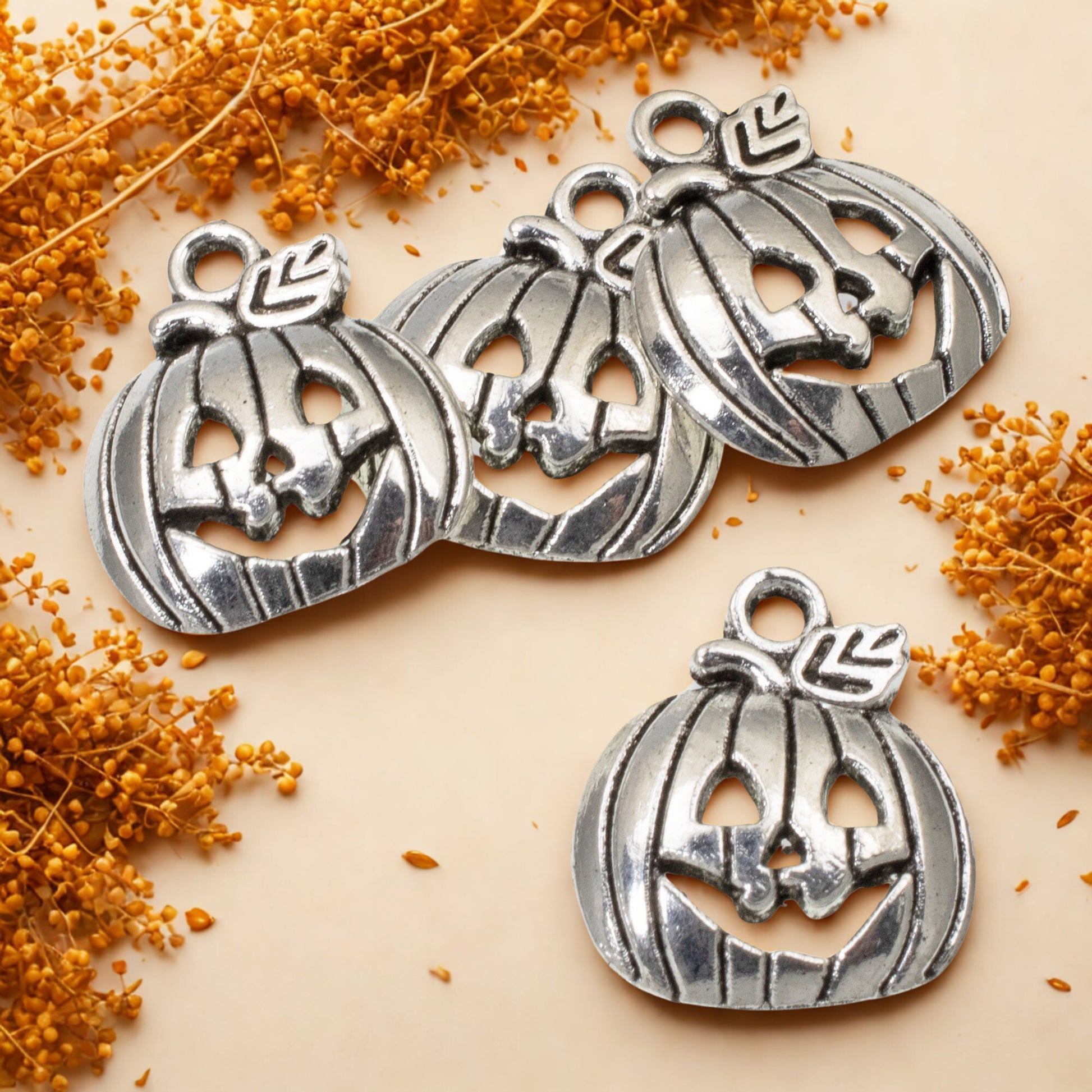 Use your autumn creativity to make something magical! These 10 silver Jack O'Lantern pumpkin charms are perfect for crafters who love creating seasonal treasures that capture the cozy spirit of fall.