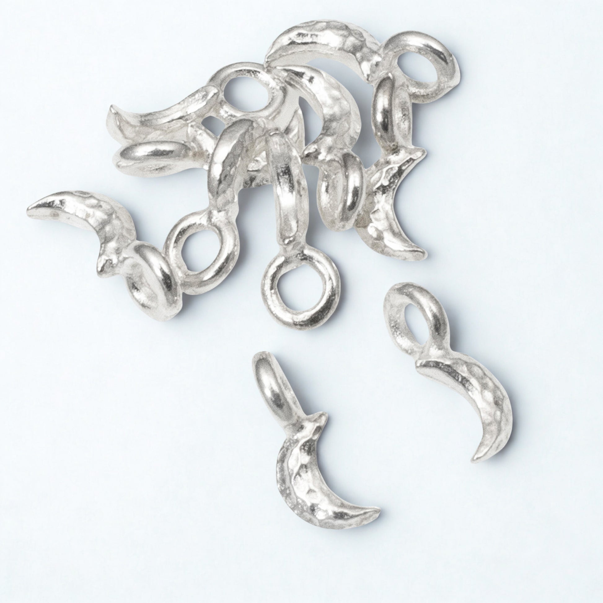 Silver Crescent Moon Charms 10pc, Celestial Jewelry Making, Minimalist Moon Pendants for Leather Cord