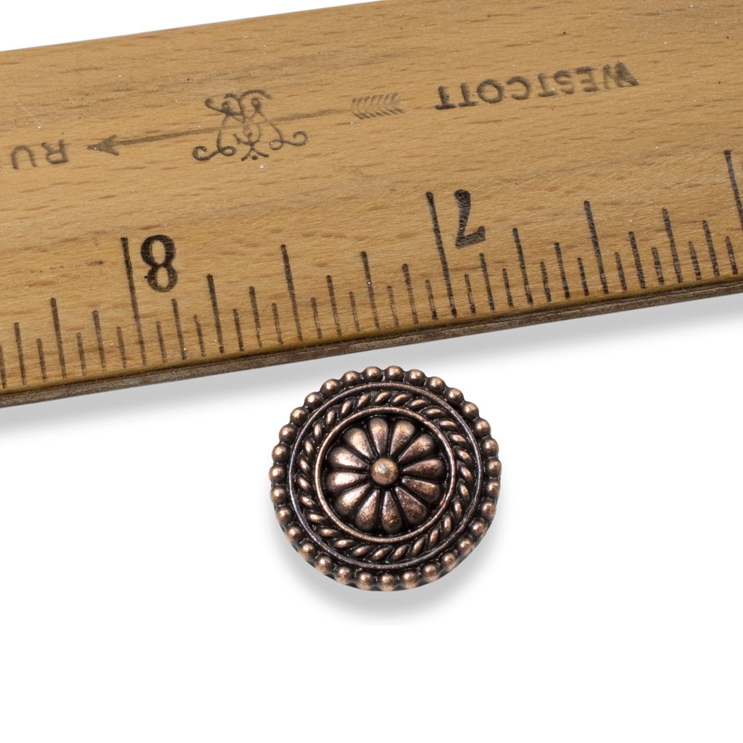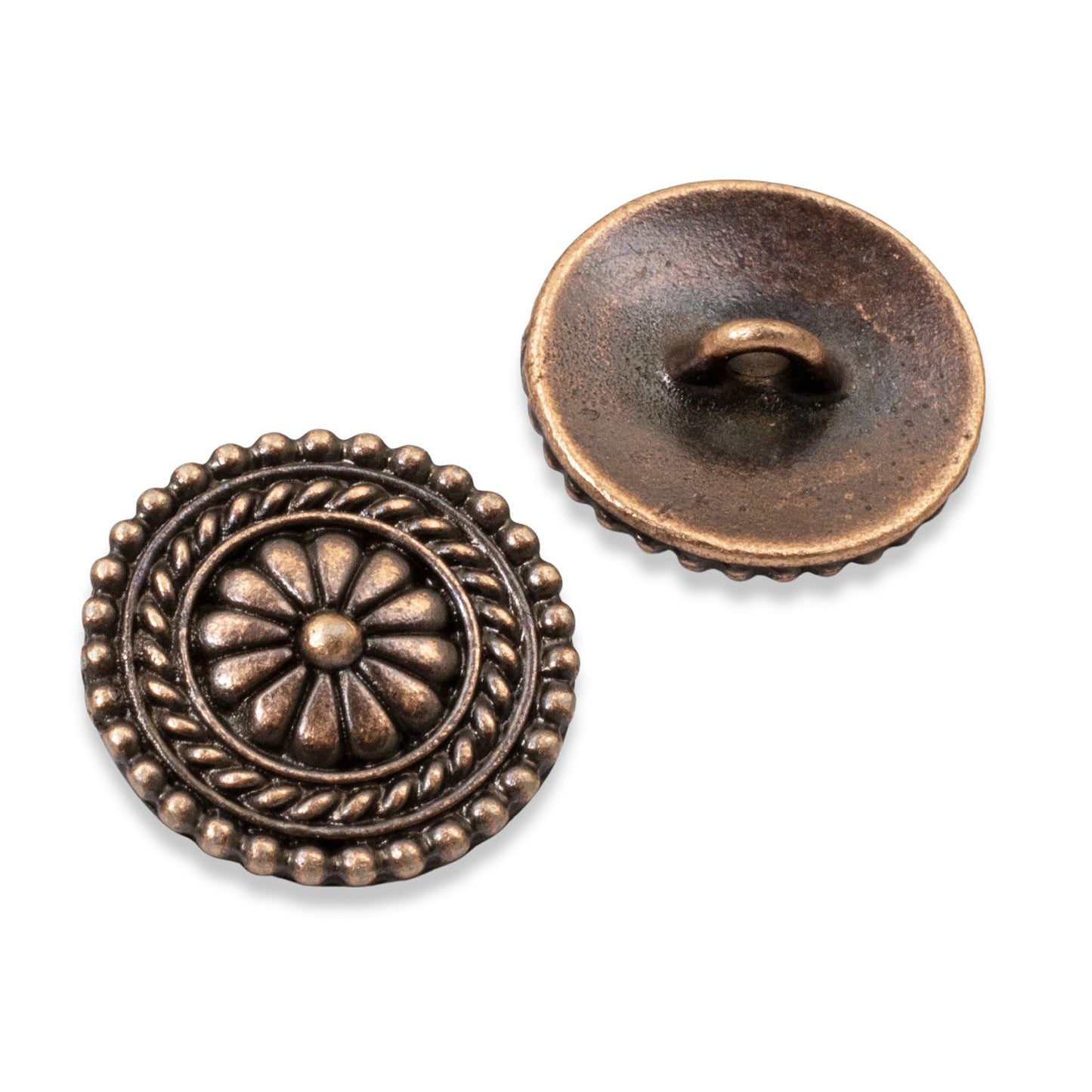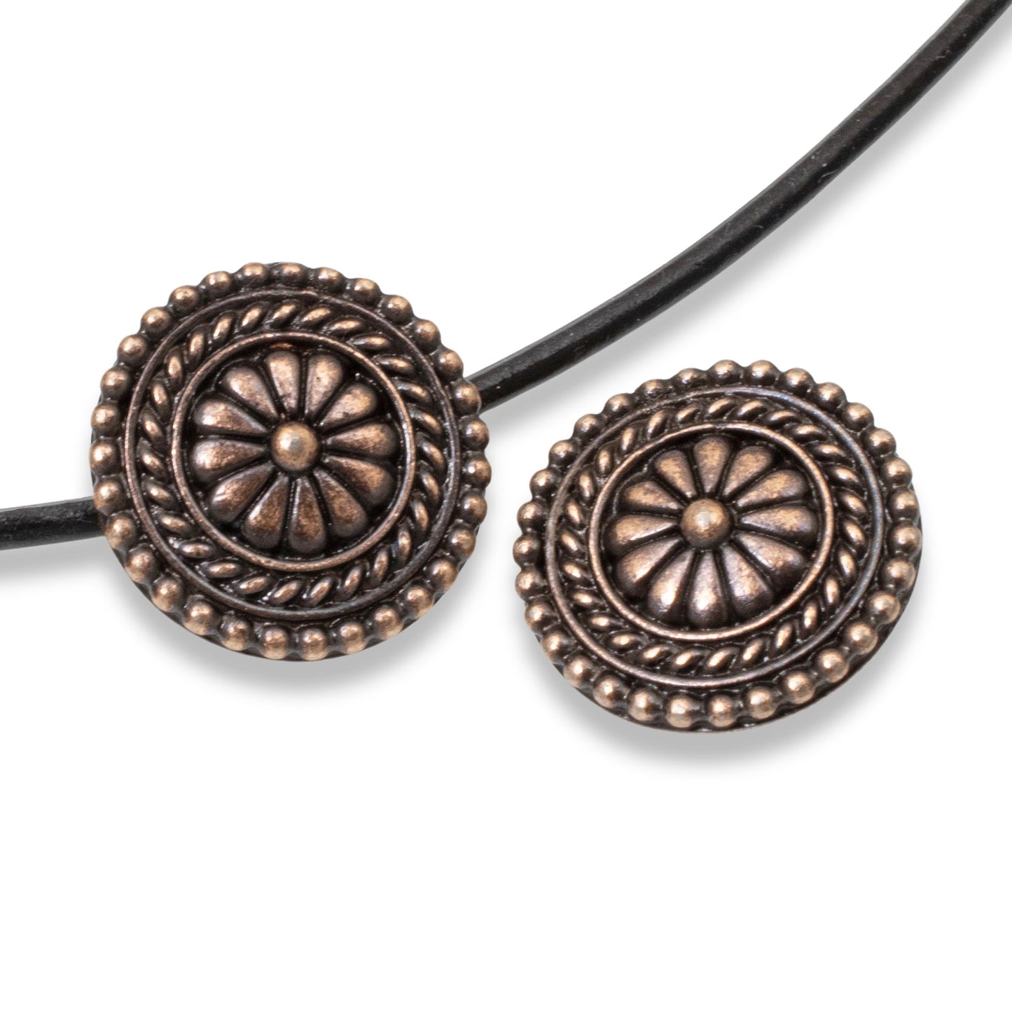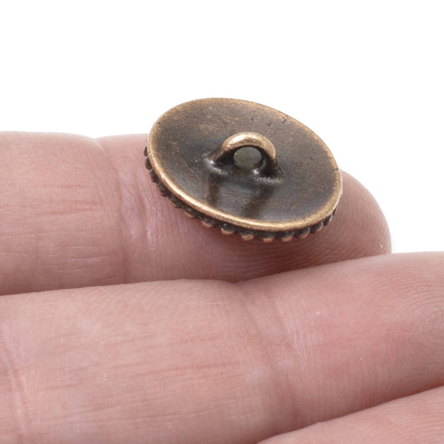 • MATERIAL: These durable, lead-free pewter buttons are elegantly plated in warm antique copper and measure 18mm in diameter. They feature a 2mm shank hole suitable for leather cord and thicker stringing materials.