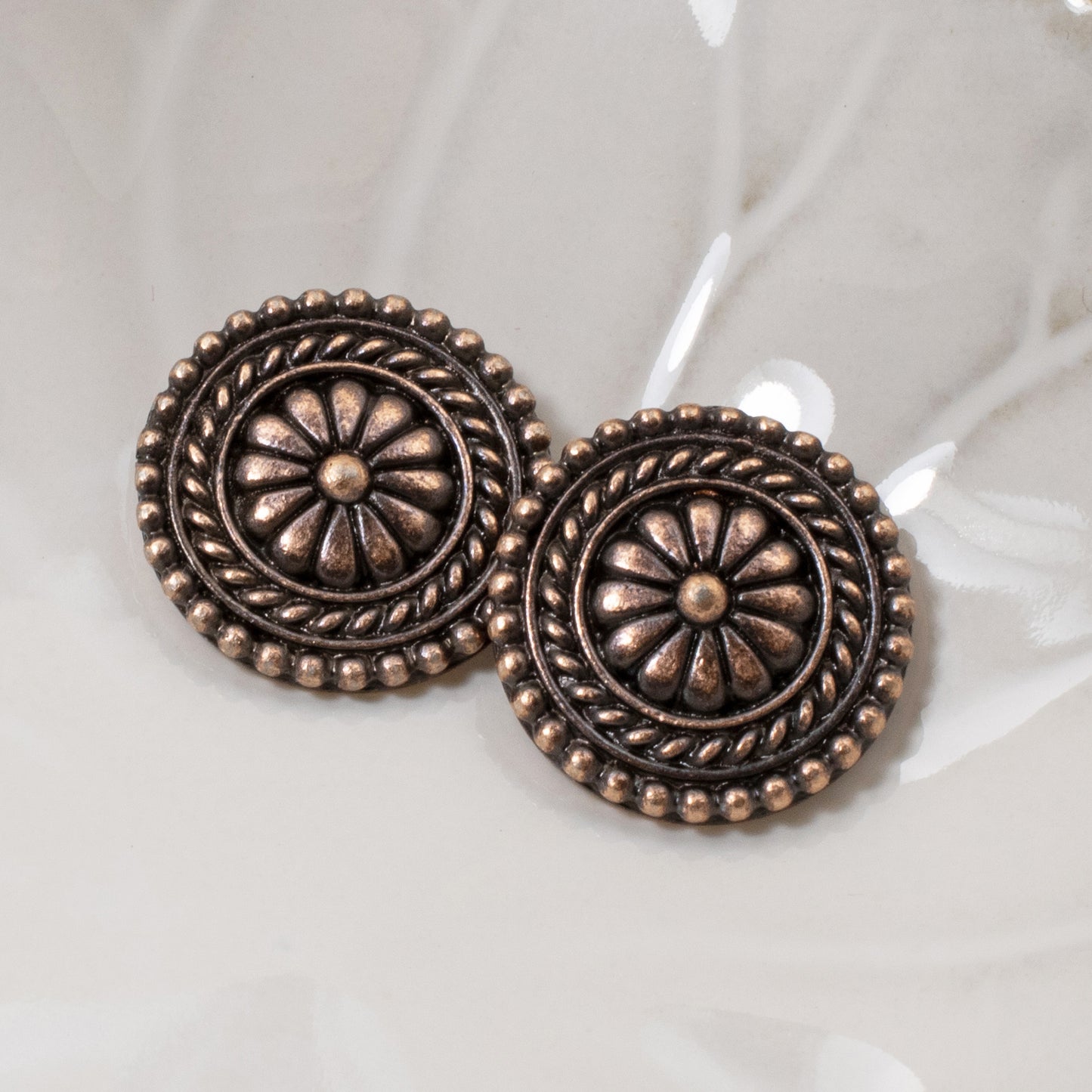 • ARTISAN DESIGN: these large copper Bali buttons, designed by TierraCast®, feature dynamic borders surrounding a flower-like element to enhance the sophistication of your handmade items.