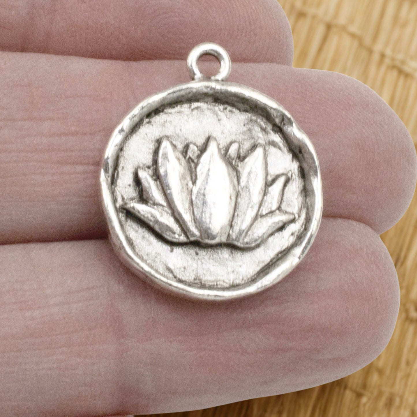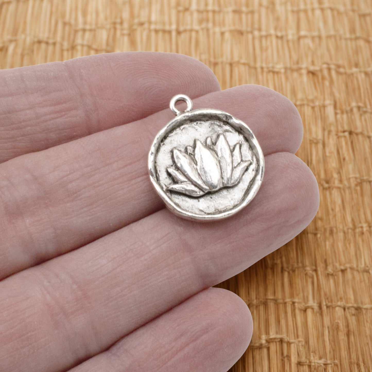 Lotus Charms Silver 2 Pack, Nunn Design Flower Meditation Spiritual Pendants, DIY Jewelry Small Projects