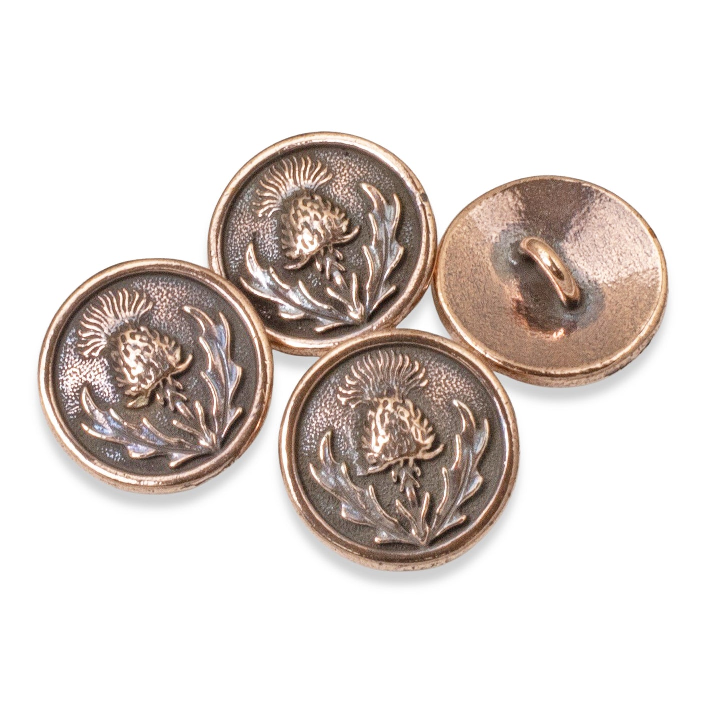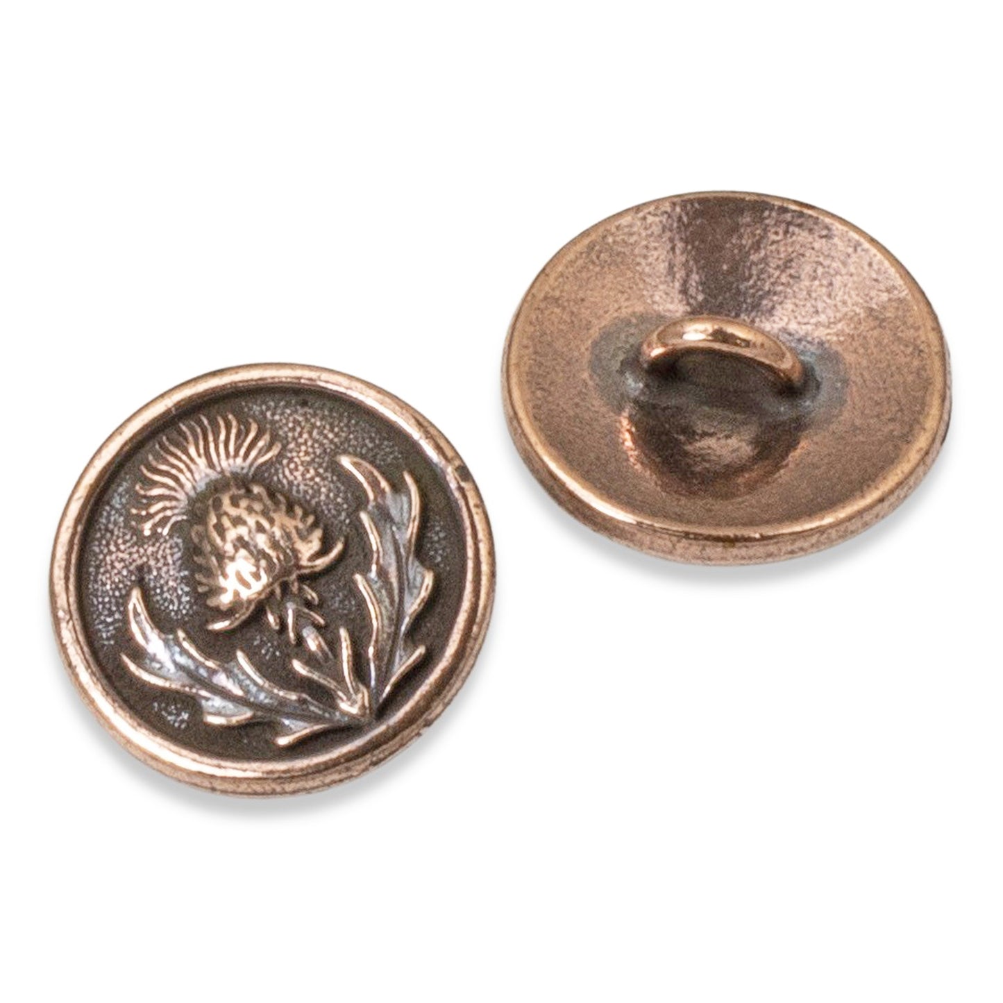 4 Copper Thistle Buttons, TierraCast Designed Leather Clasp + Shank Back
