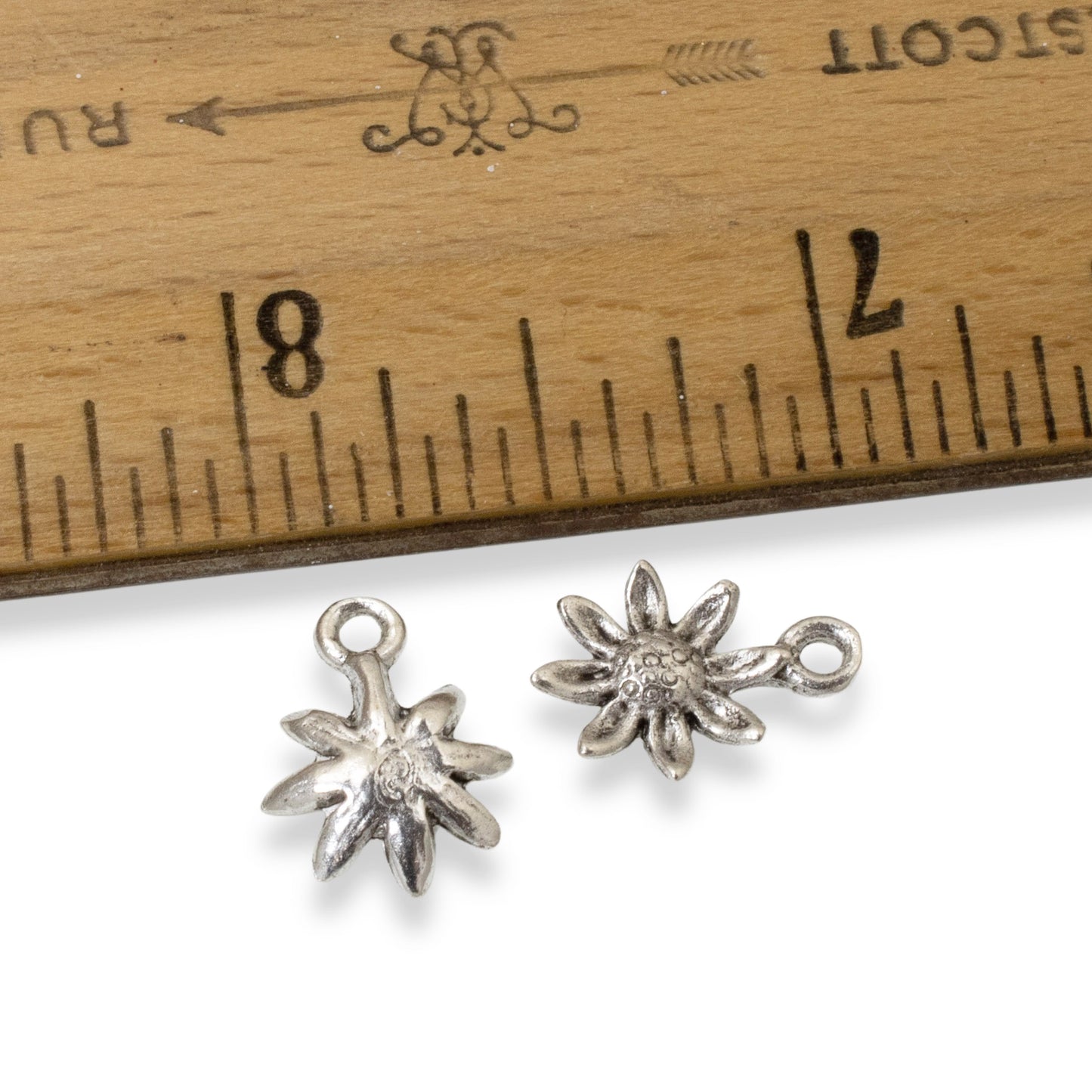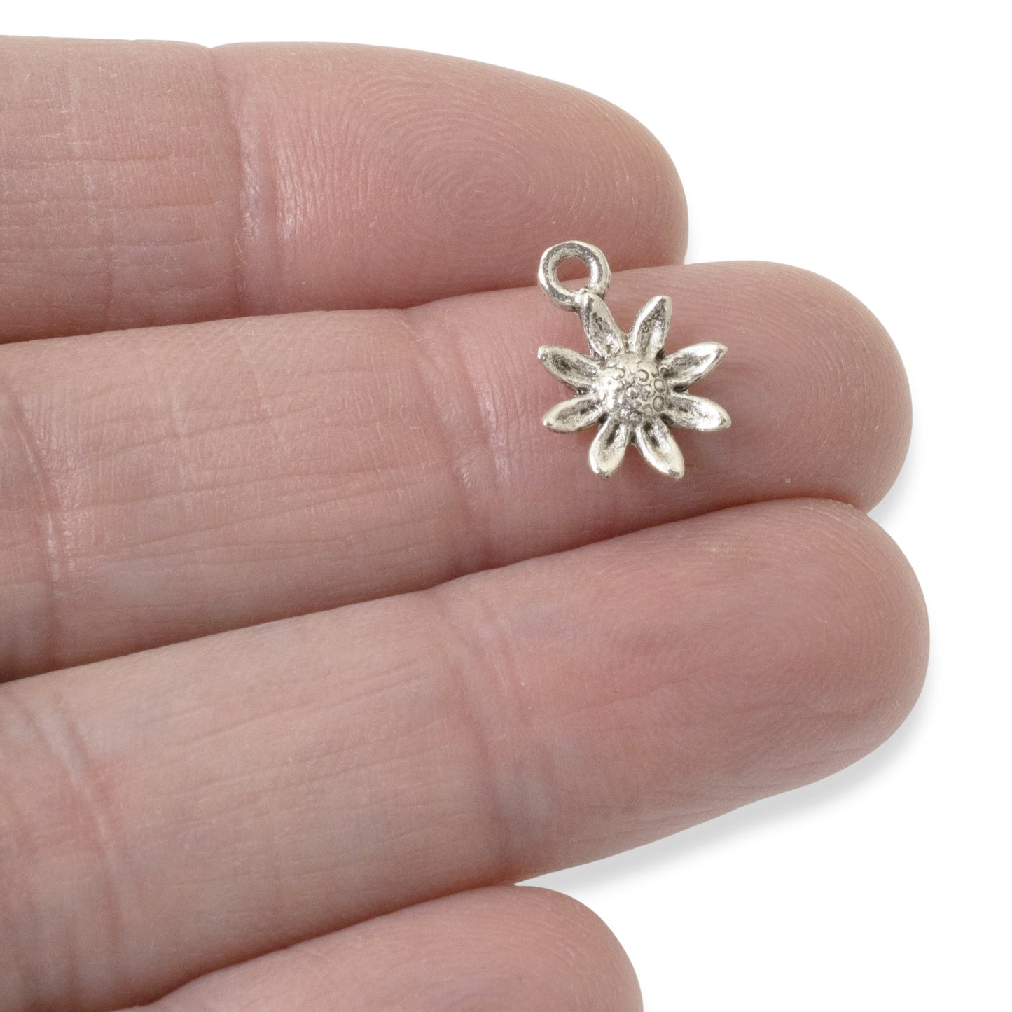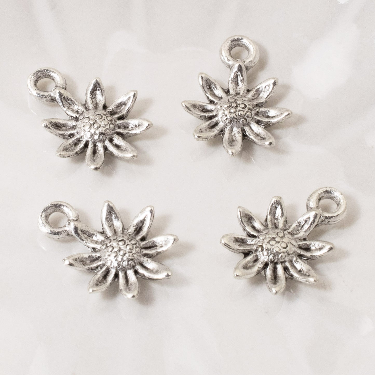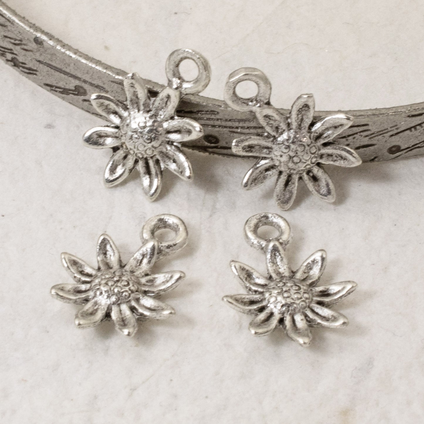 4 Silver Mini Daisy Charms - Artisan Quality Flowers - DIY Nature Jewelry