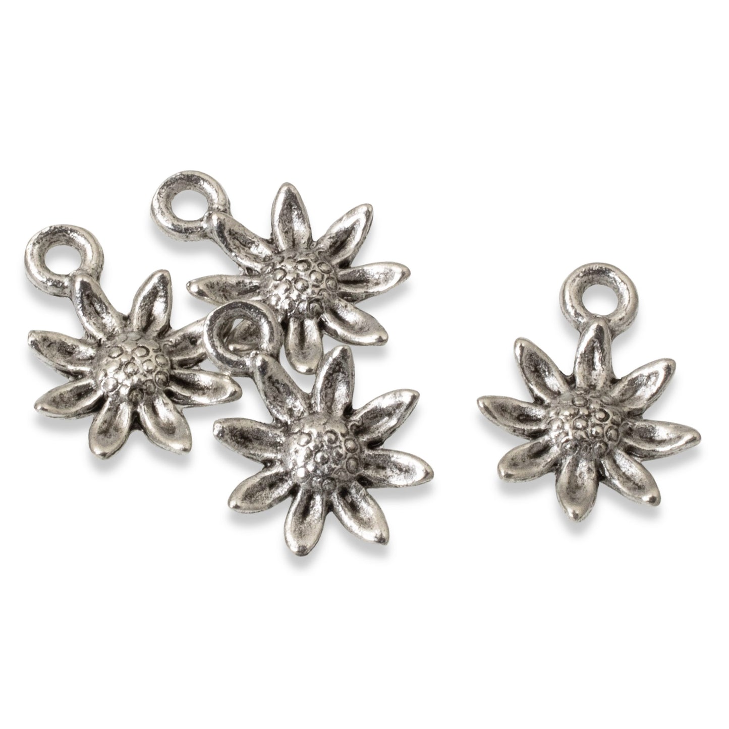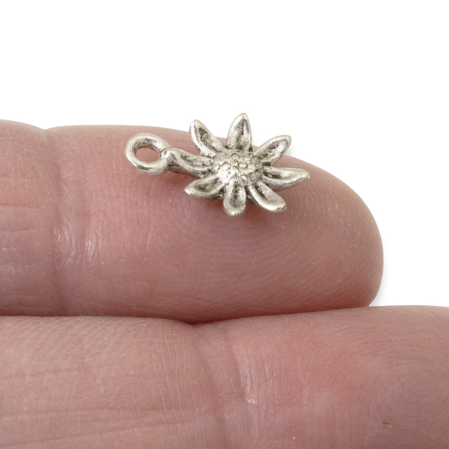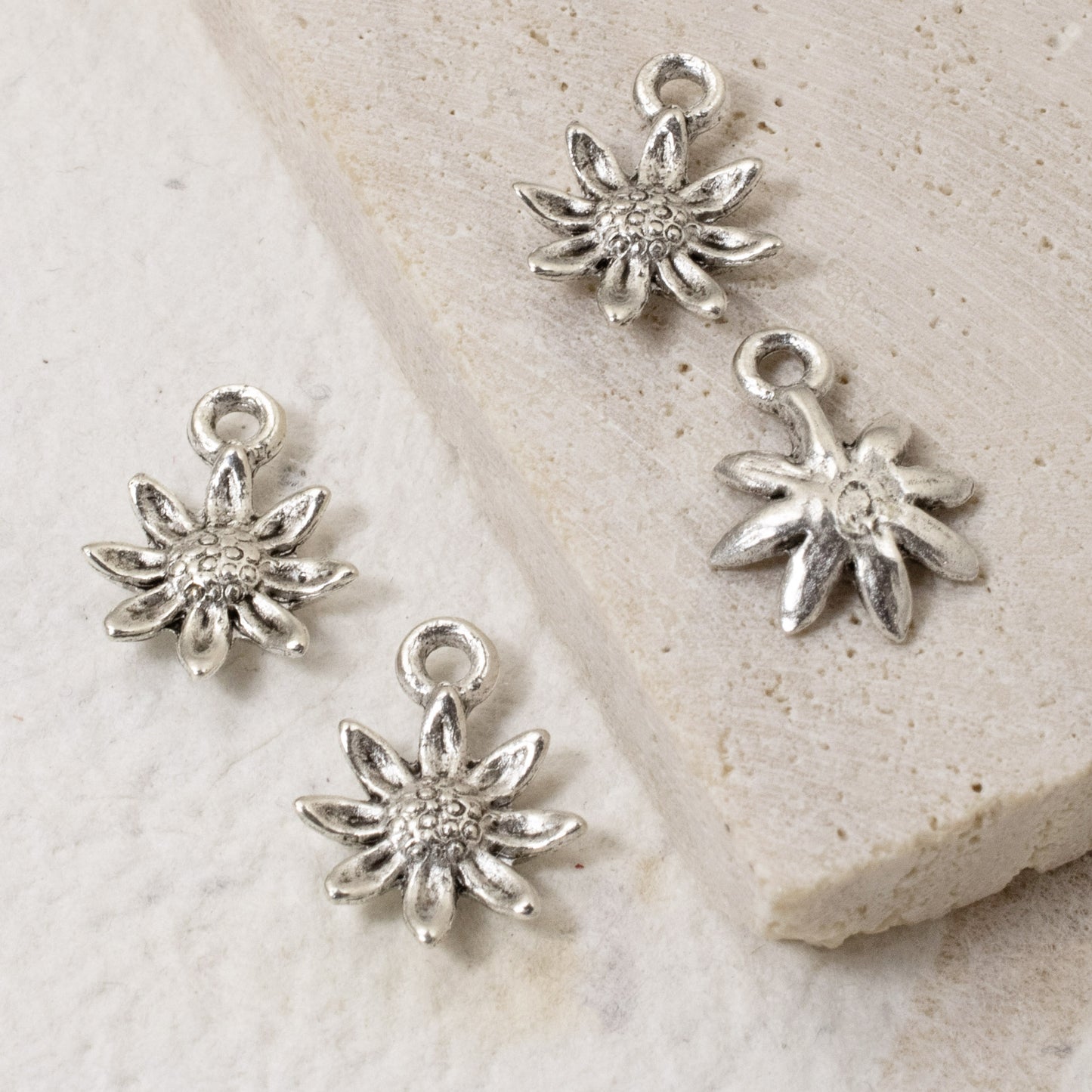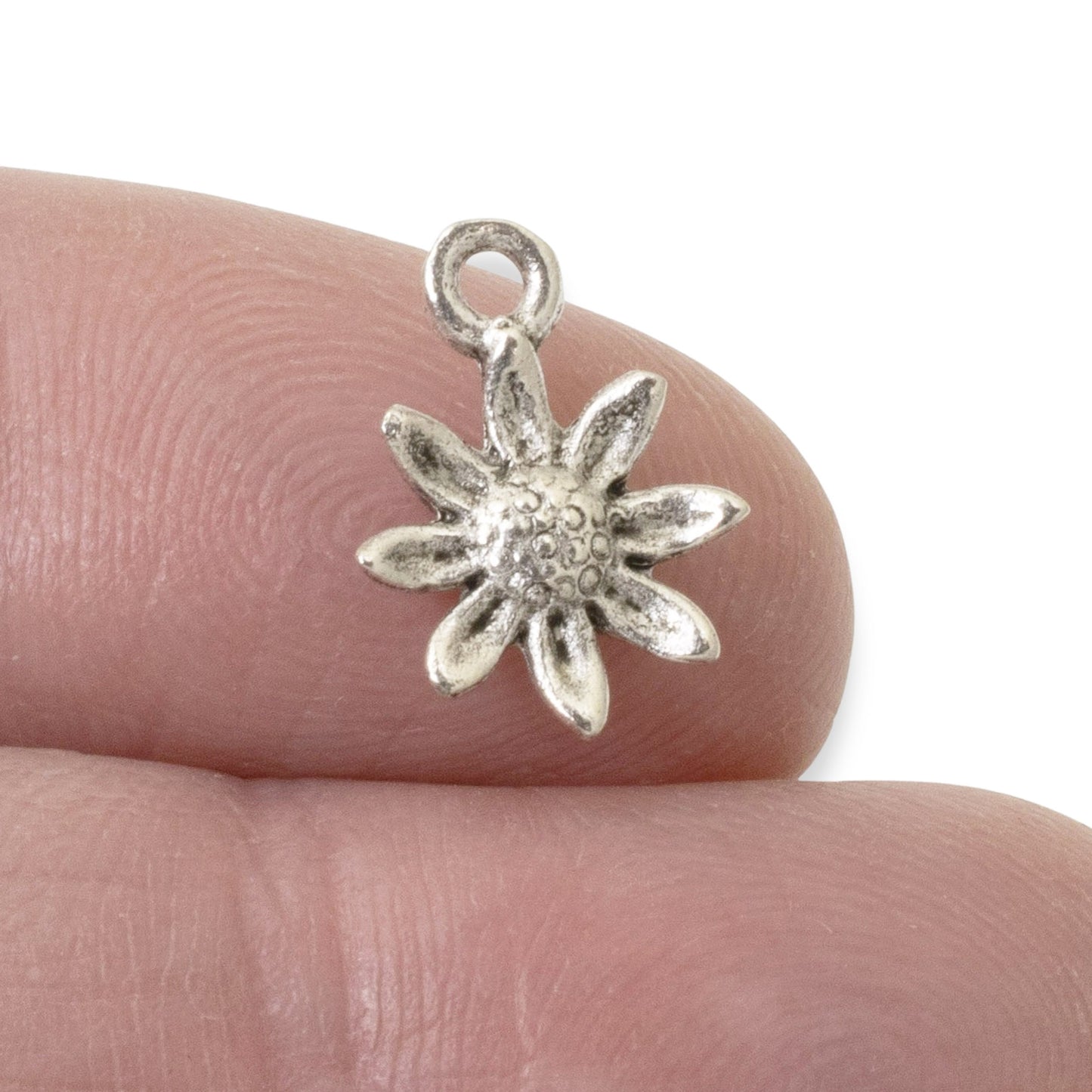 4 Silver Mini Daisy Charms - Artisan Quality Flowers - DIY Nature Jewelry