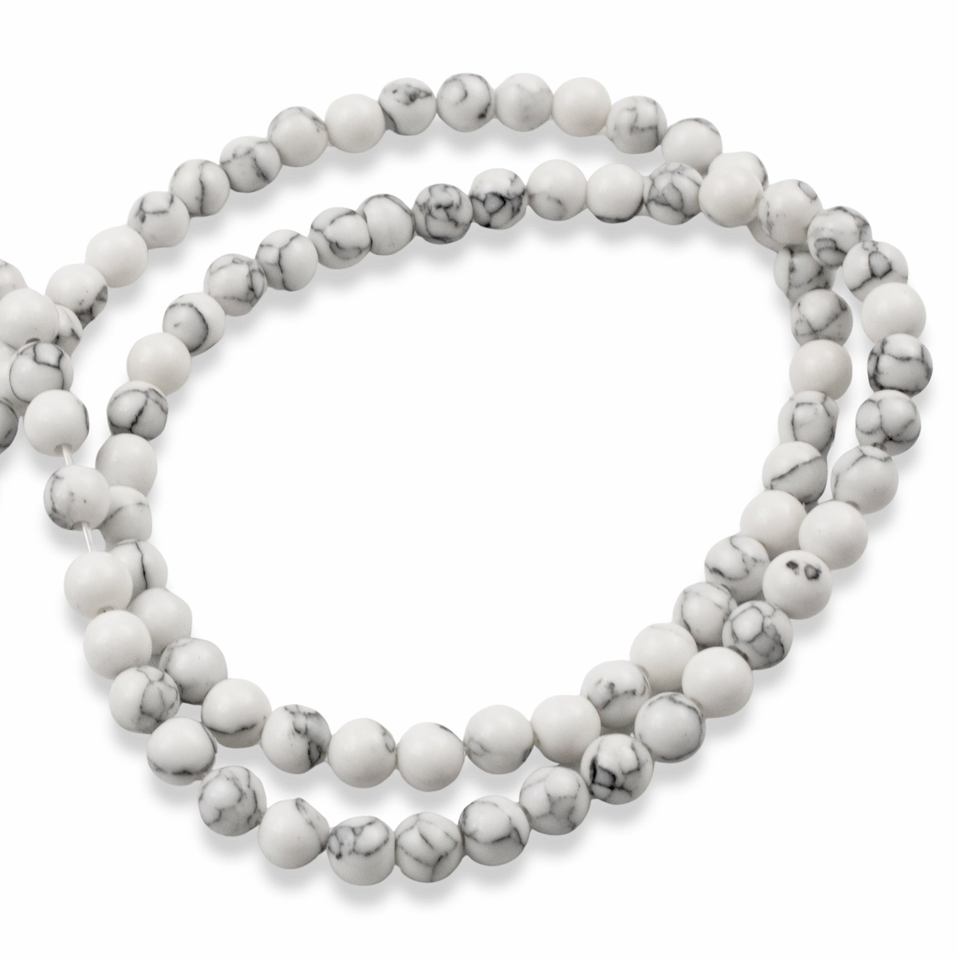 Each bead showcases authentic howlite with organic gray veining, creating unique marble-like patterns. The smooth, polished surface catches light beautifully while the natural variations ensure no two beads are exactly alike.