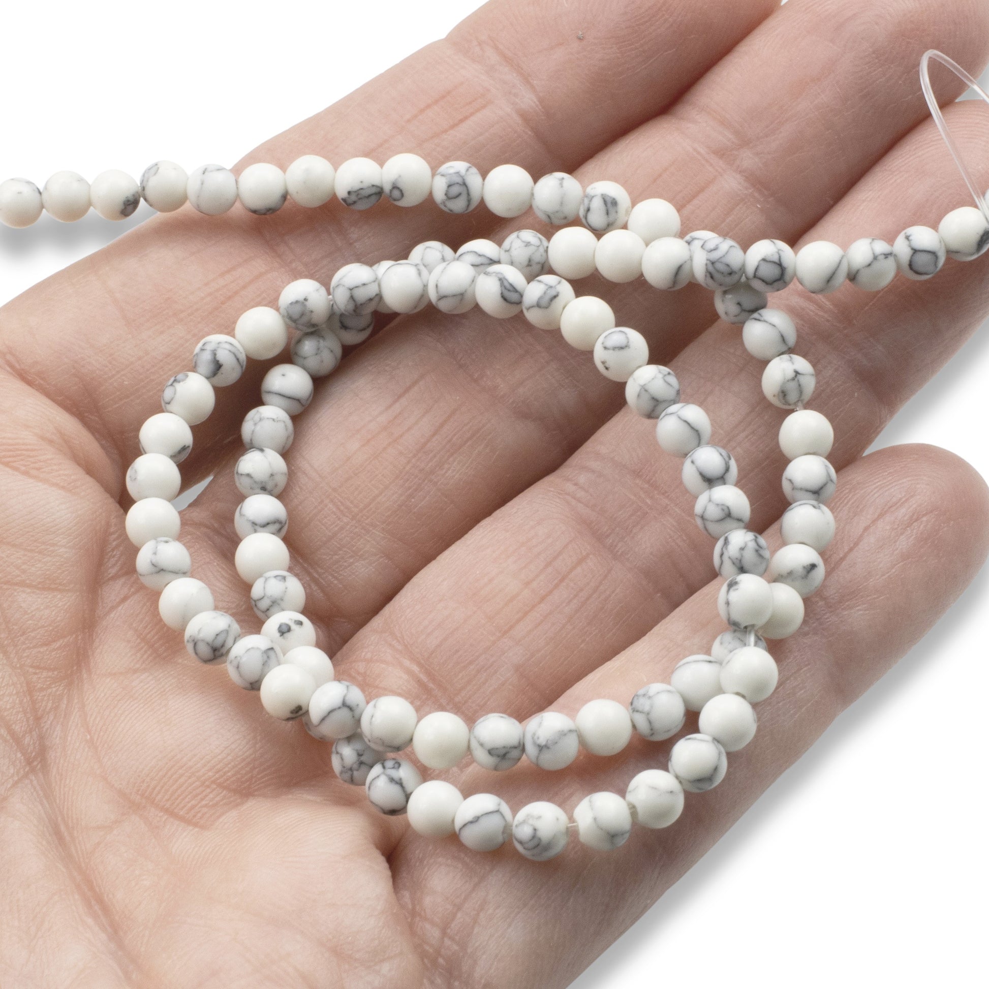 White Howlite Beads: 4mm Round Natural Gemstone Strand Jewelry Making 90pcs