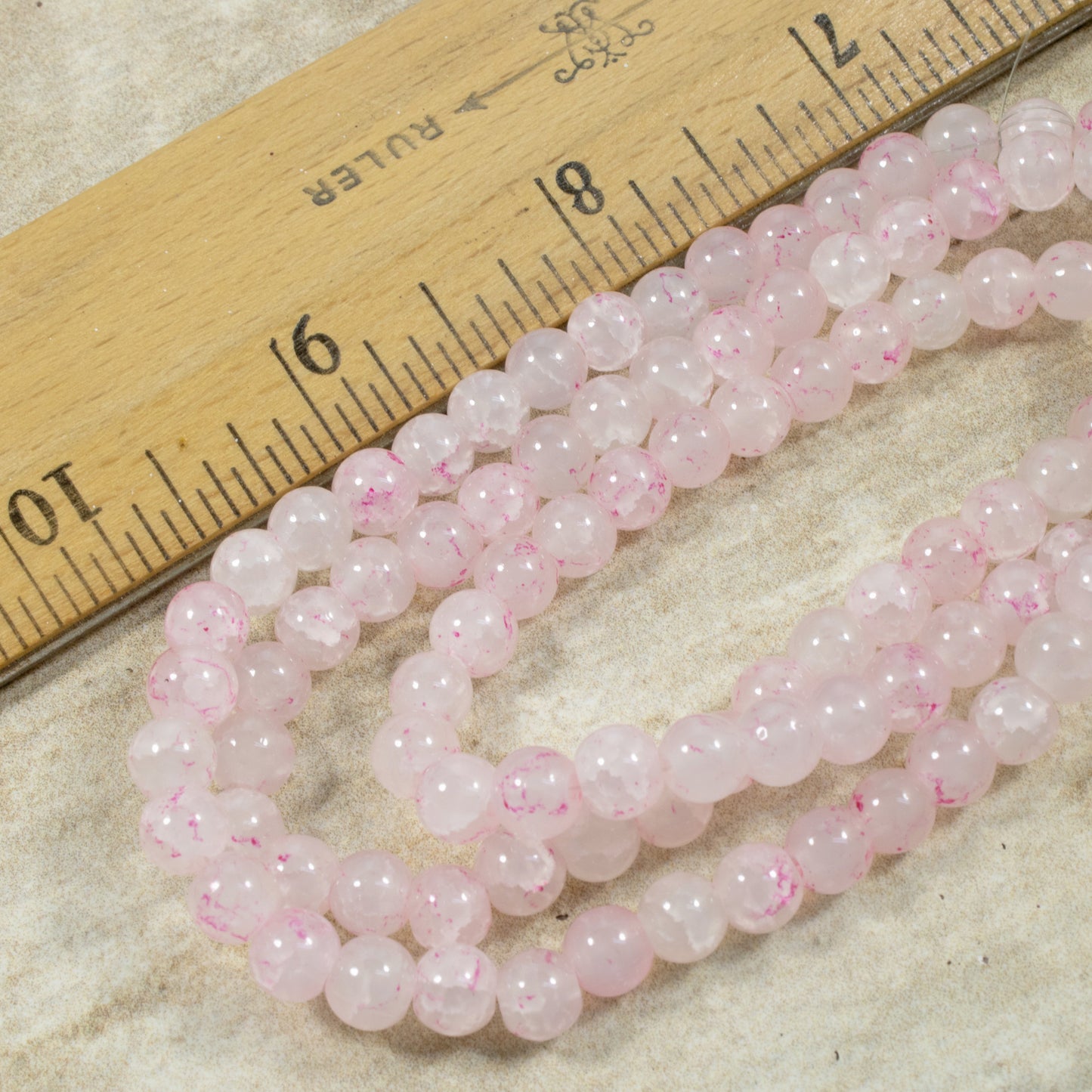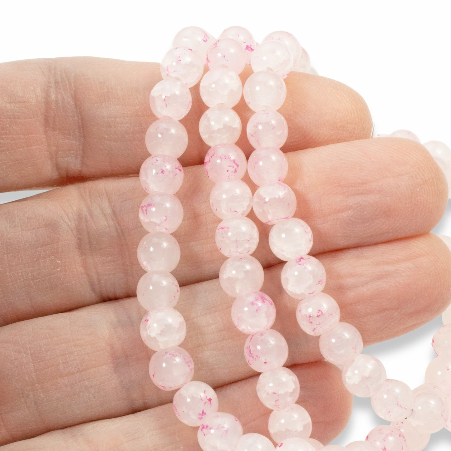 Pale Pink Dragon Vein Glass Beads -100-Pack 6mm Crackle Beads + Veining