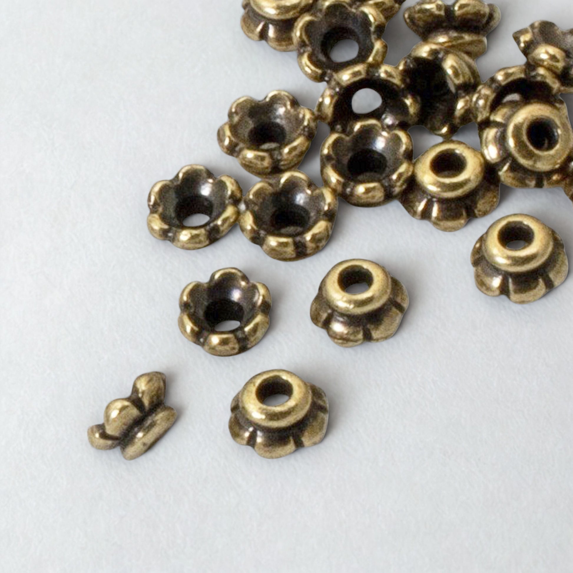 Elevate your delicate jewelry designs with these exquisite small antique brass scalloped bead caps that transform 4mm beads into extraordinary focal points! Perfect for earrings and minimalist jewelry with timeless floral elegance and warm golden brass beauty.