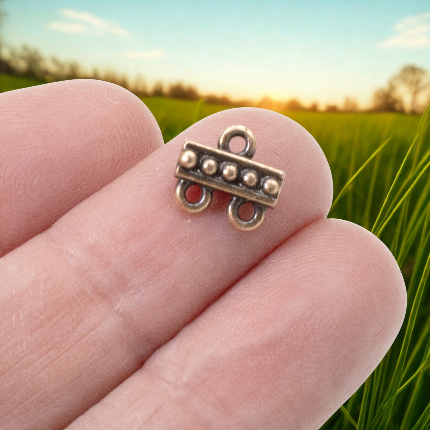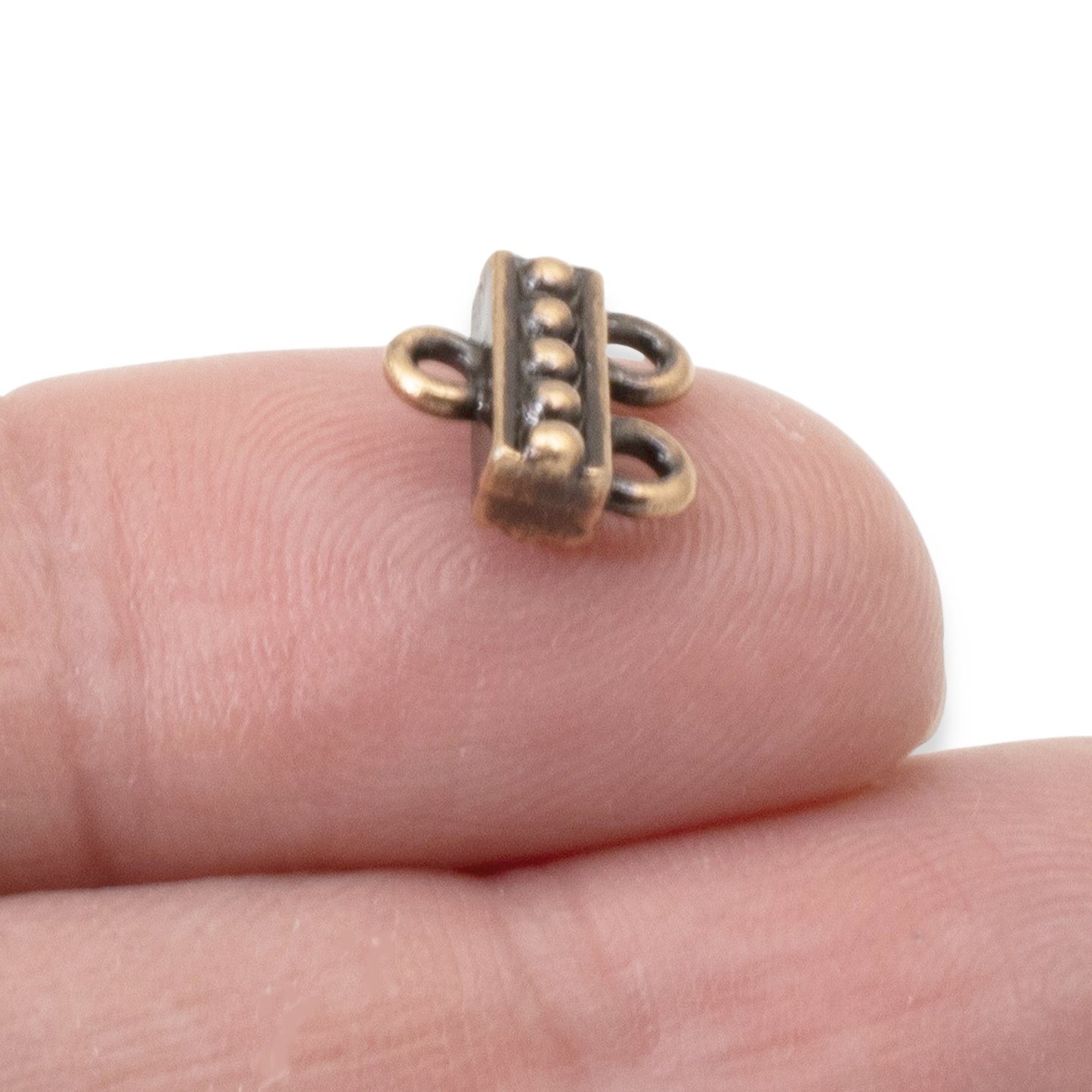 These versatile connectors allow you to easily create stunning multi-strand jewelry pieces by connecting two strands to one. The antique copper finish provides a rich, timeless look that pairs beautifully with various beads and materials. The beaded texture adds depth and visual interest to your designs.
