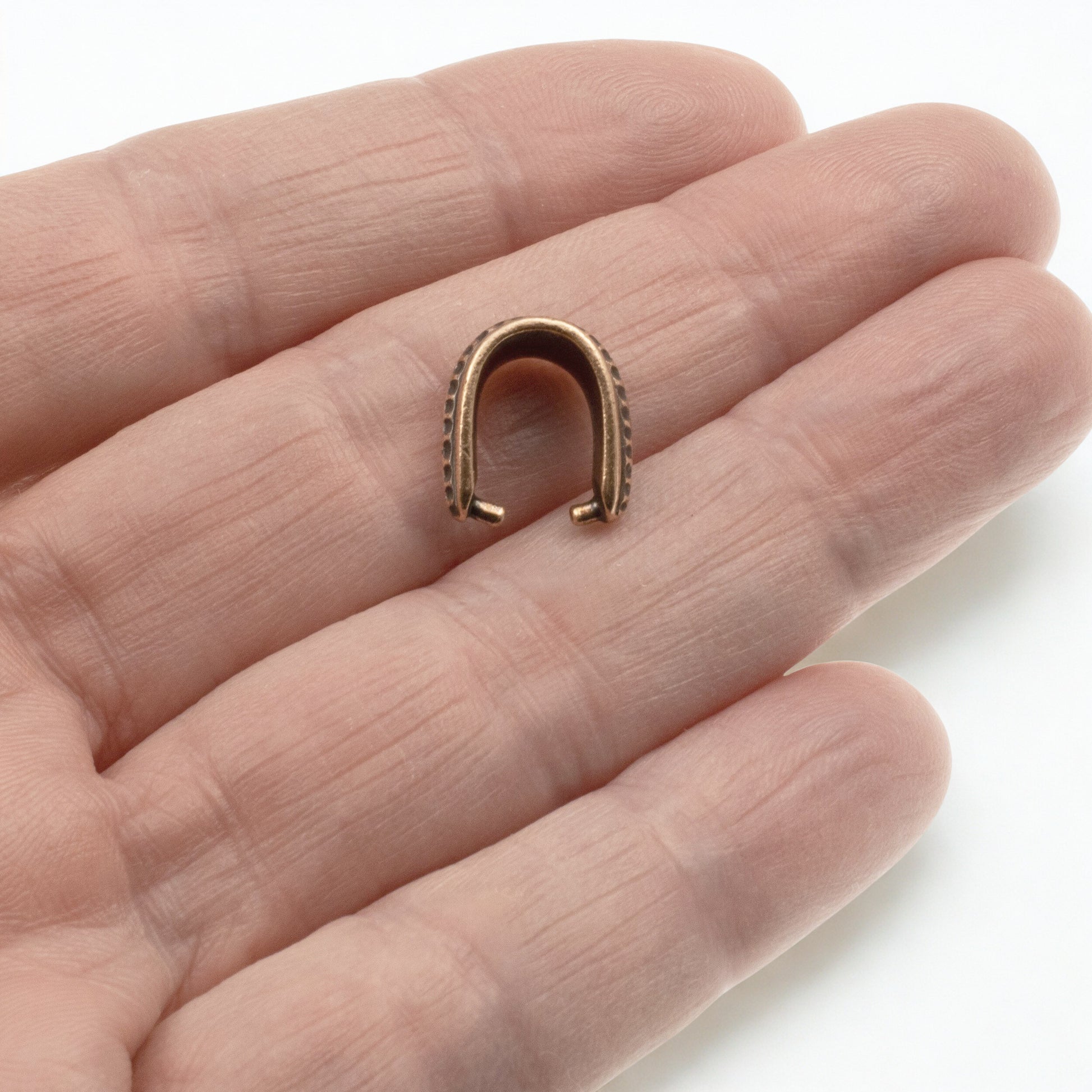 Bring rustic artisan charm to your jewelry with the warm, earthy beauty of antique copper! These stunning hammered pinch bails feature a gorgeous aged copper patina that adds organic character and handcrafted sophistication to every nature-inspired creation.