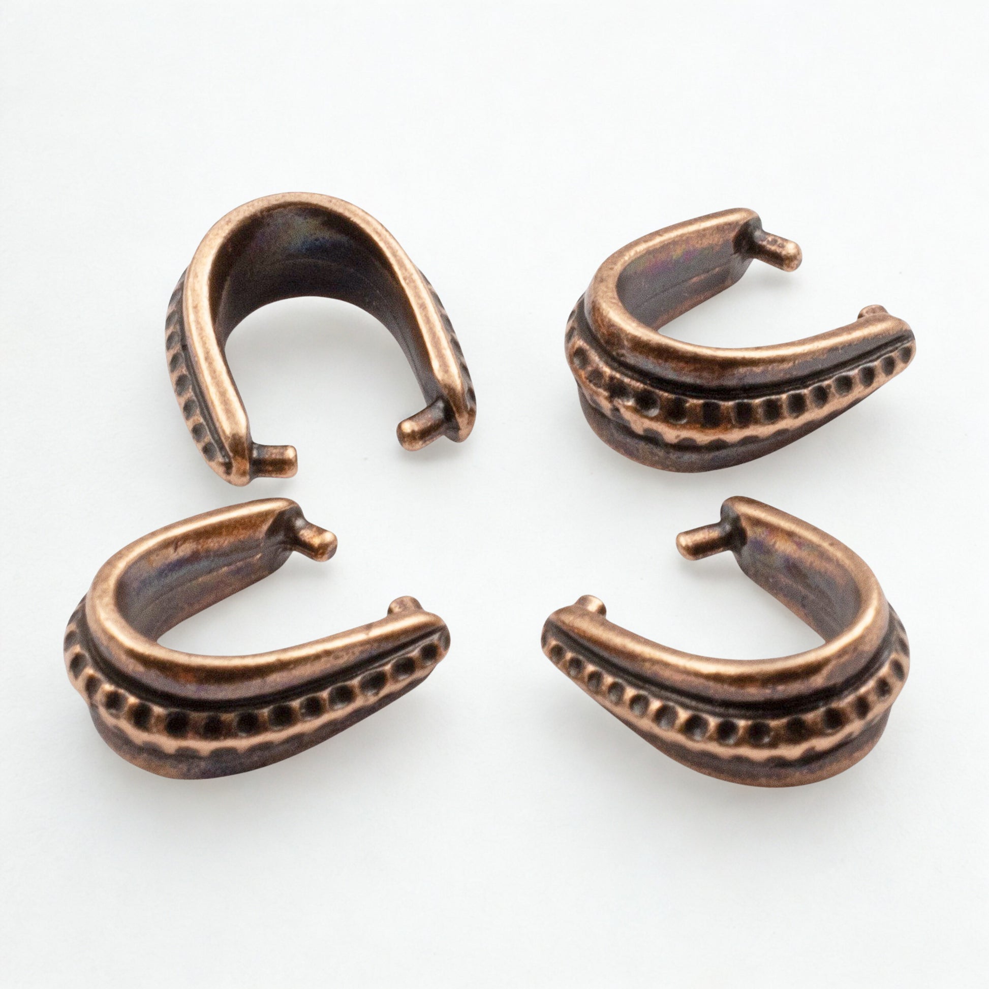 Antique Copper Hammered Pinch Bails, 4-Pack Rustic Pendant Holders Earthy Tone