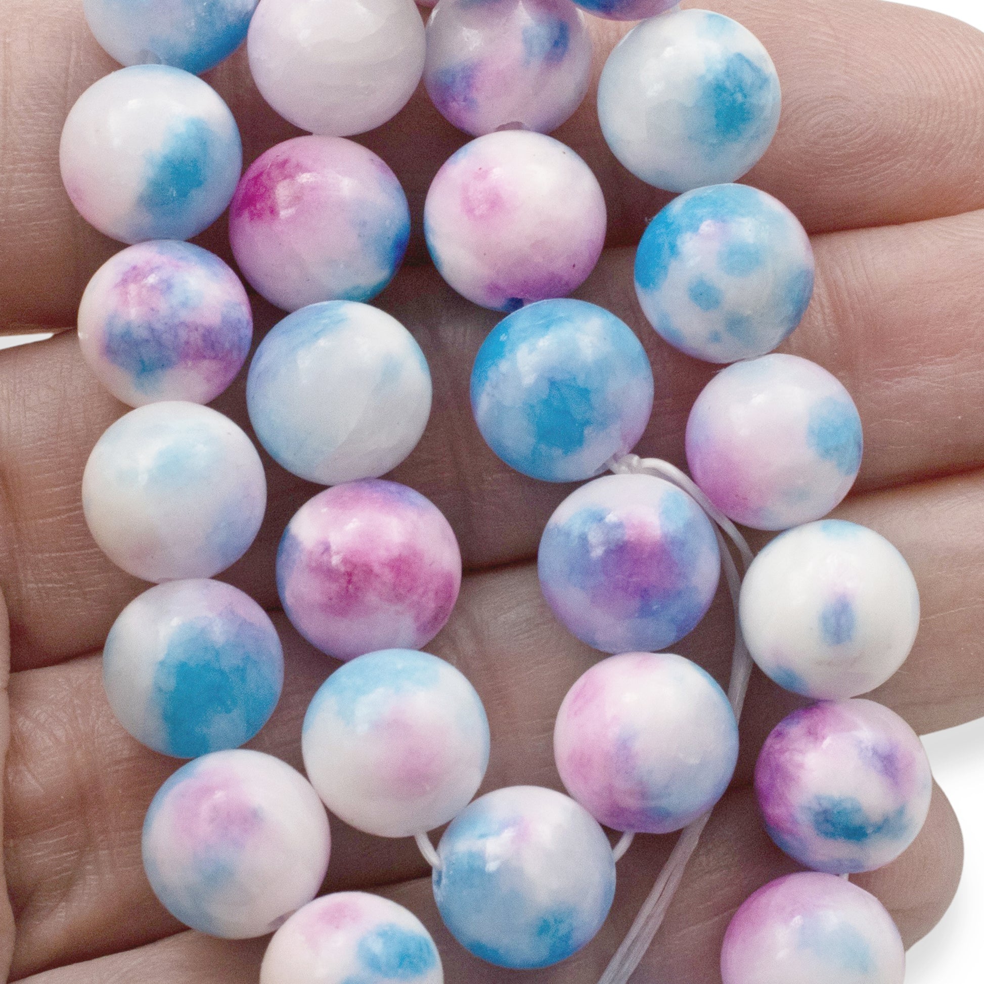 10mm Pink Blue Watercolor Jade Beads 30-Pack Loose Beads Jewelry Making Crafts