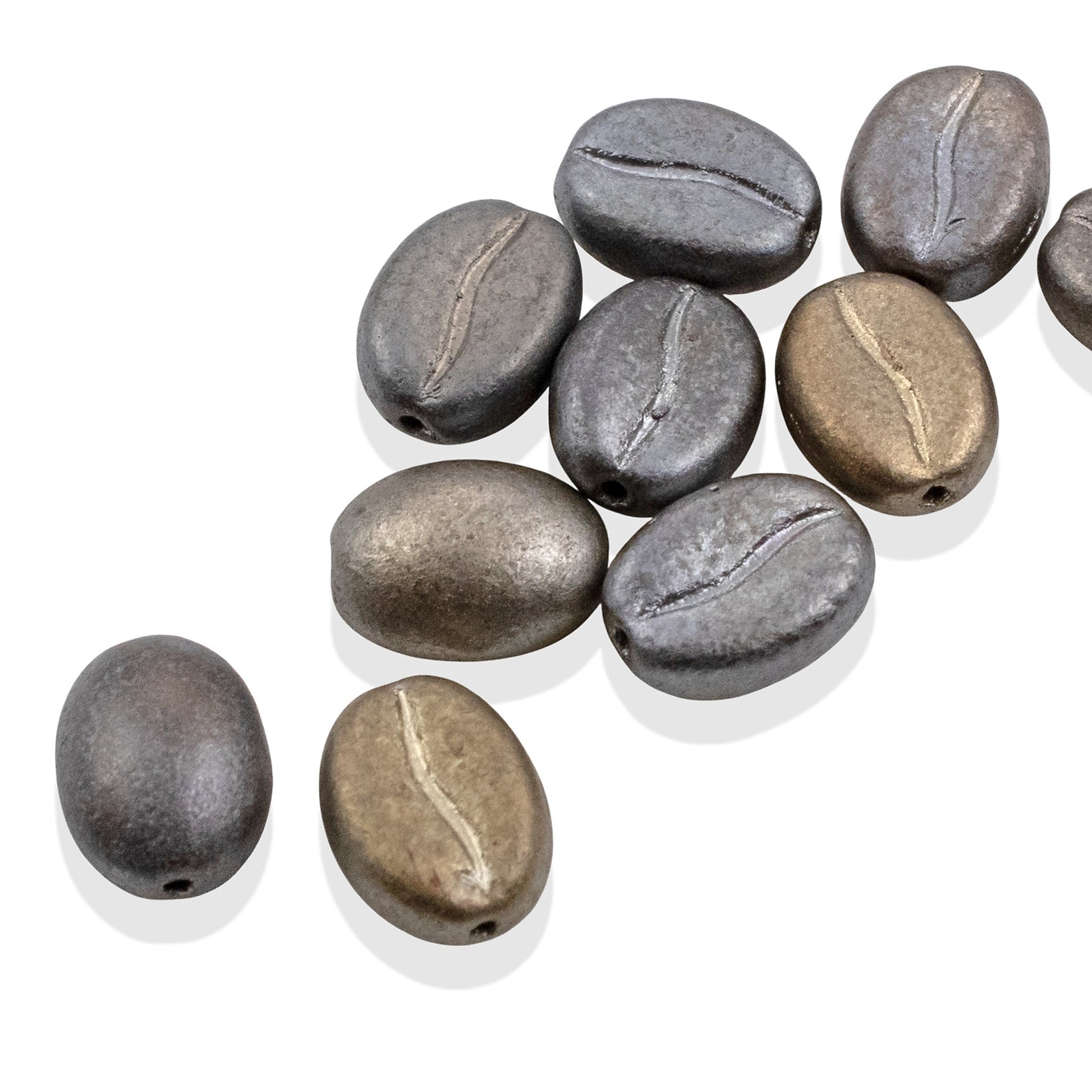 Create sophisticated jewelry with these elegant flax and grey metallic coffee bean beads! Each pack includes a beautiful neutral mix of cool grey and warm flax (bronze-silver) tones. Every bead captures the realistic coffee bean shape with signature center line, finished in subtle metallic tones perfect for minimalist designs and elegant everyday jewelry.