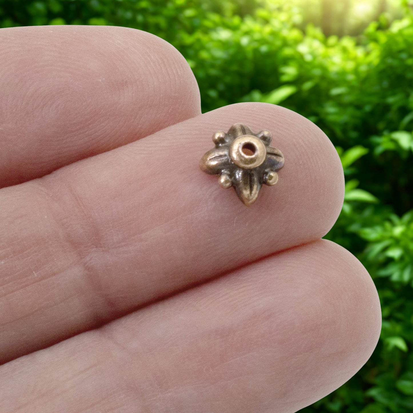 Transform your beaded creations with these exquisite antique copper leaf bead caps. Meticulously crafted to capture the delicate beauty of natural foliage, these caps bring organic elegance and warm copper tones to your handmade jewelry pieces.