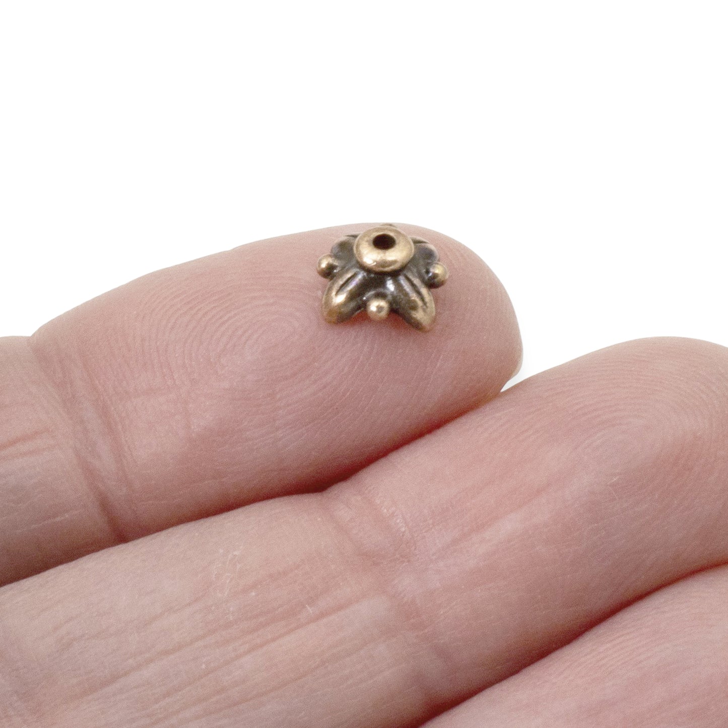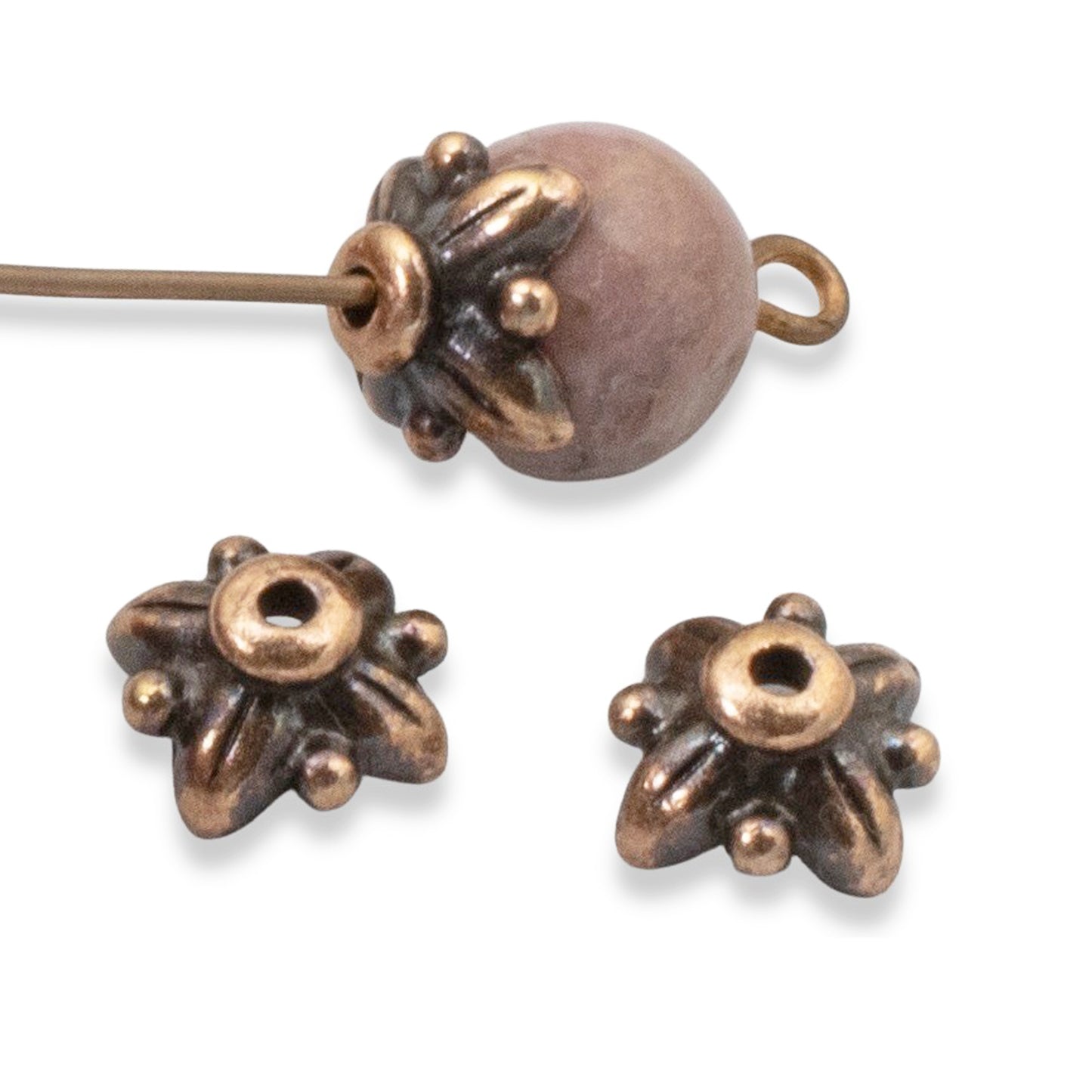 These beautiful bead caps combine the durability of lead-free pewter with the rich warmth of copper plating, enhanced with an artisan antique oxidized finish that highlights every intricate detail.