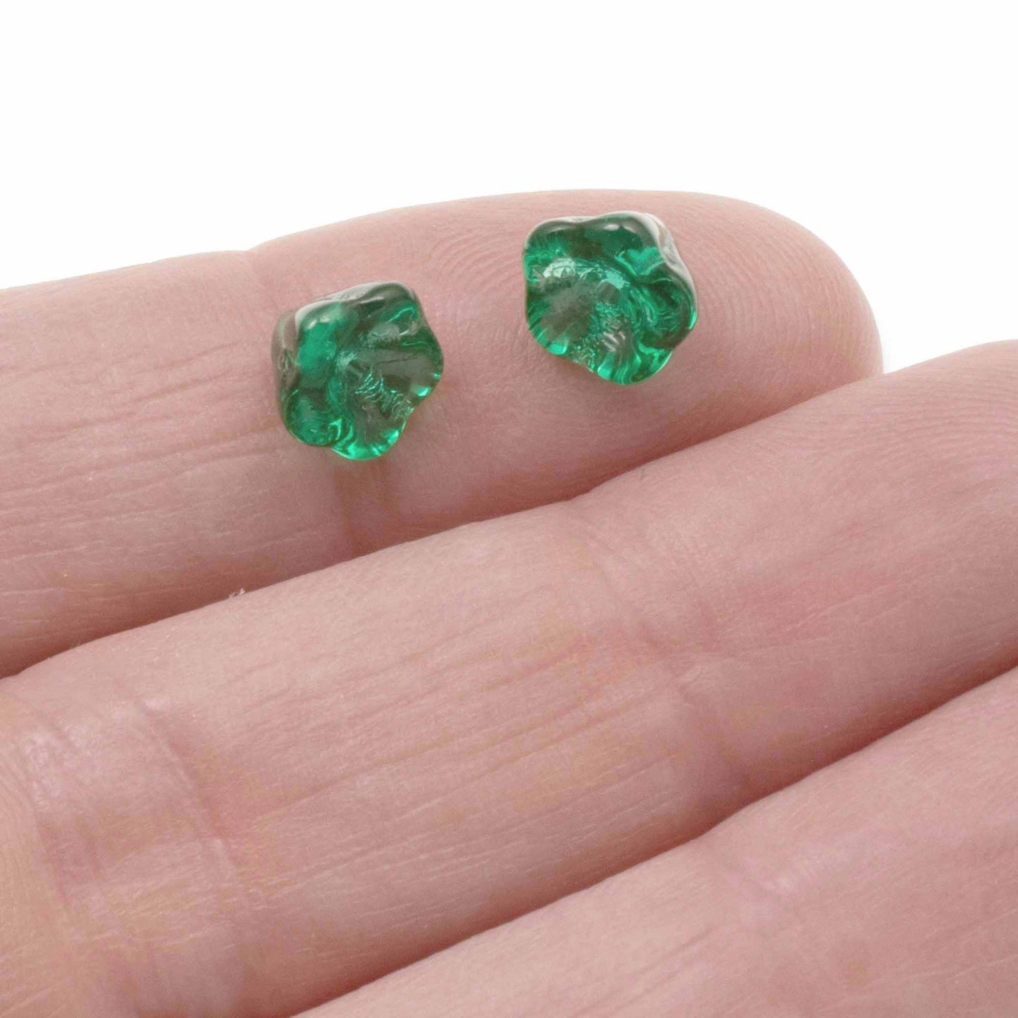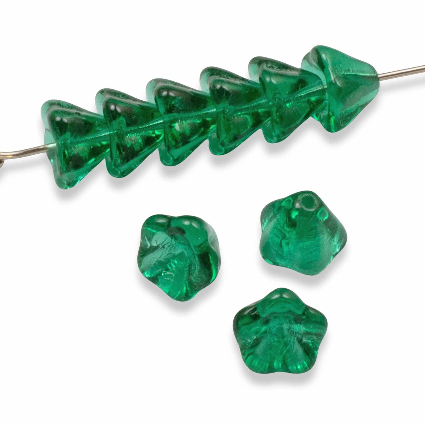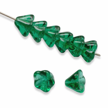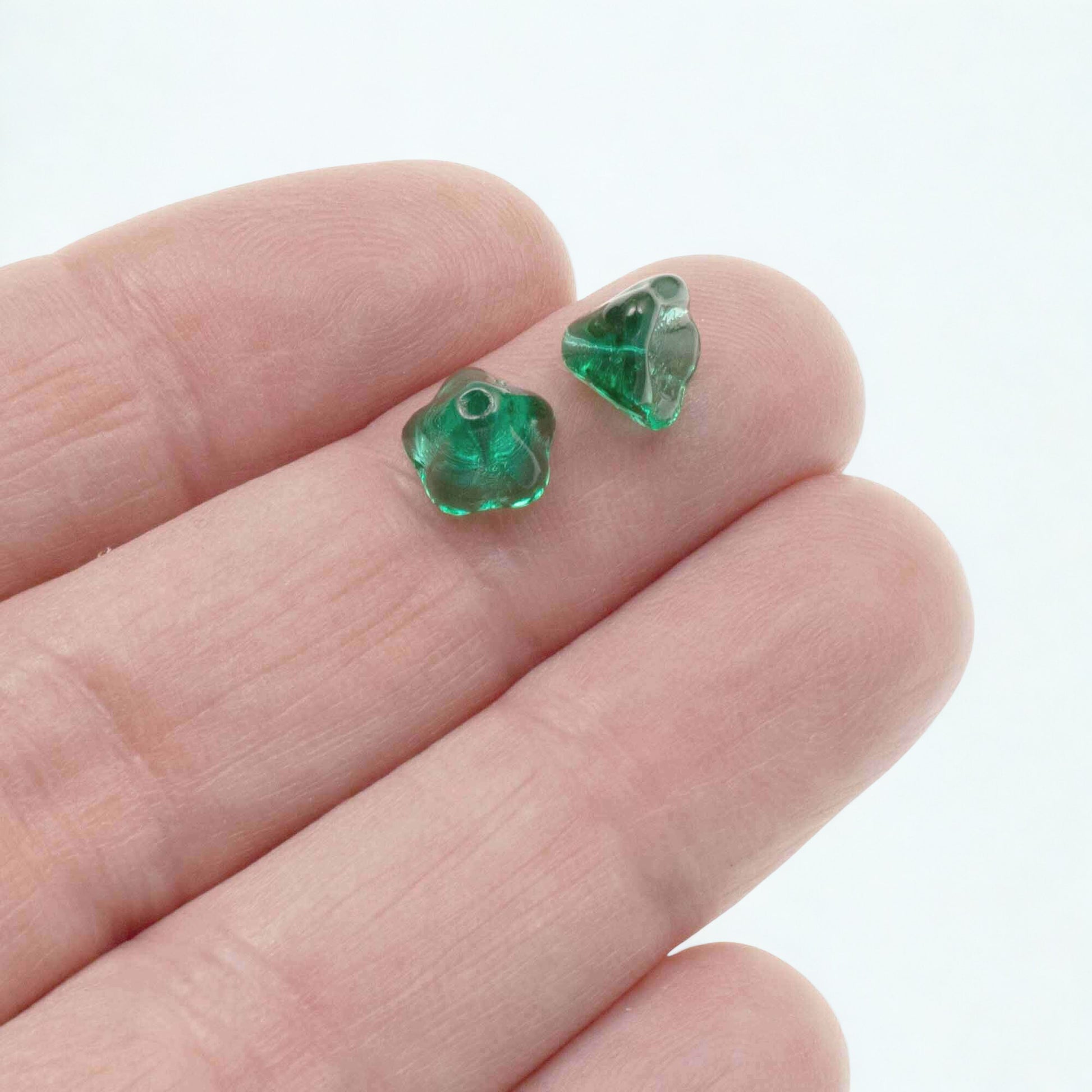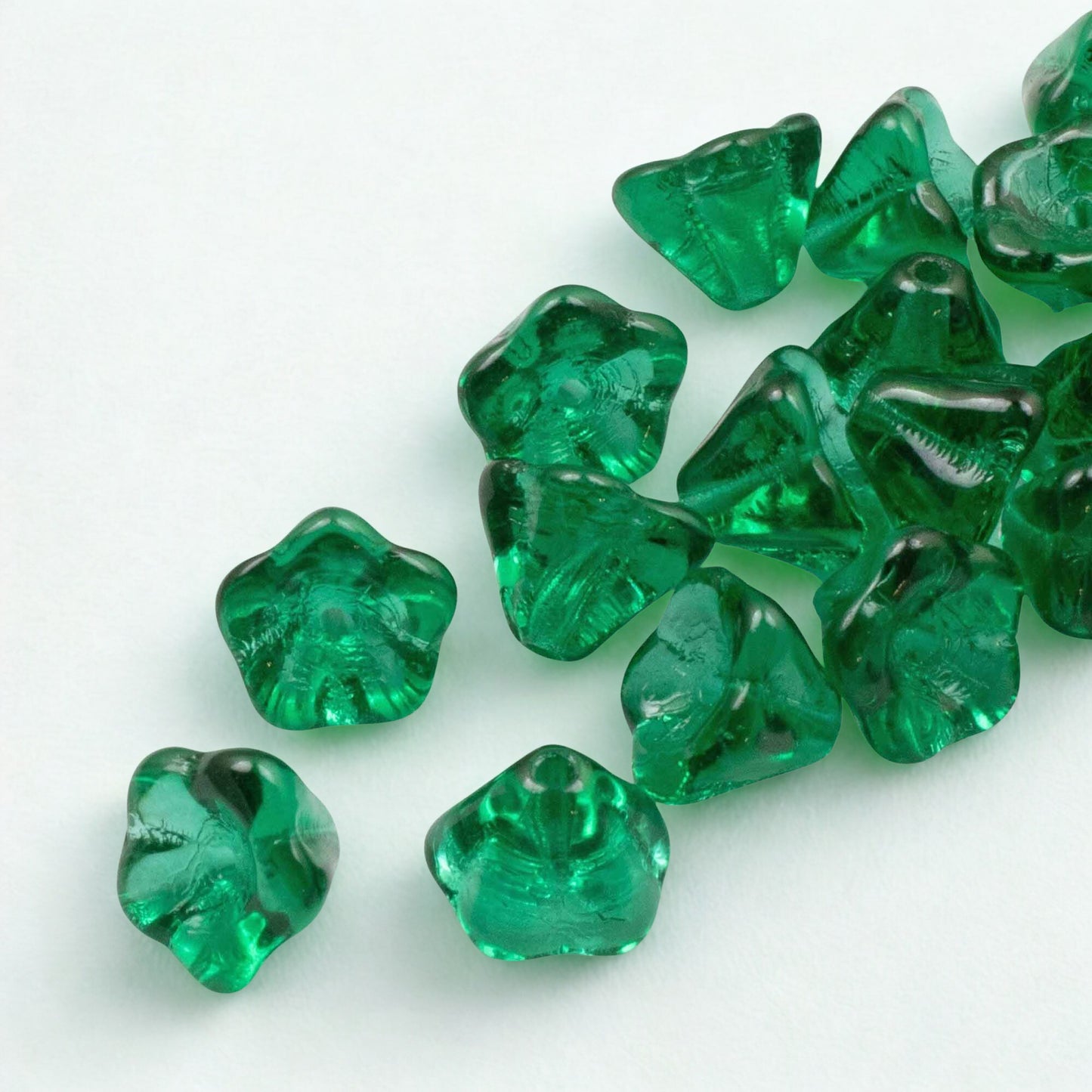 Emerald Green Bell Flower Beads 25-Pack, Czech Glass Jewelry Making Beads 6x8mm for DIY Bracelets & Earrings