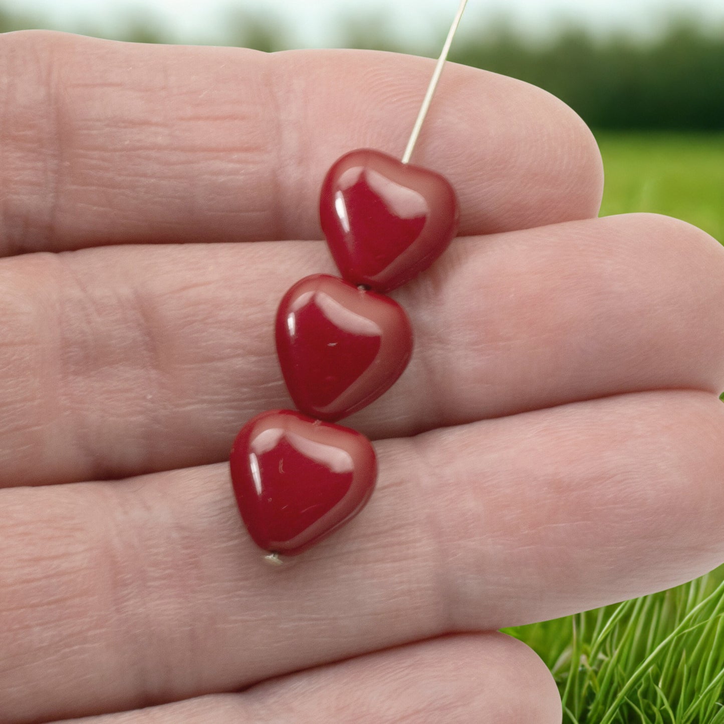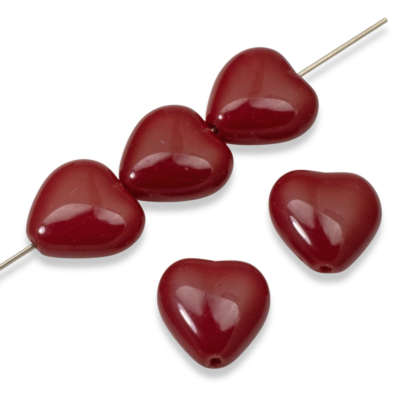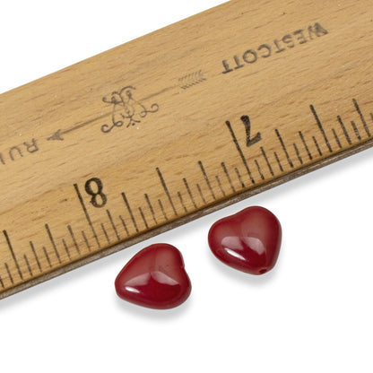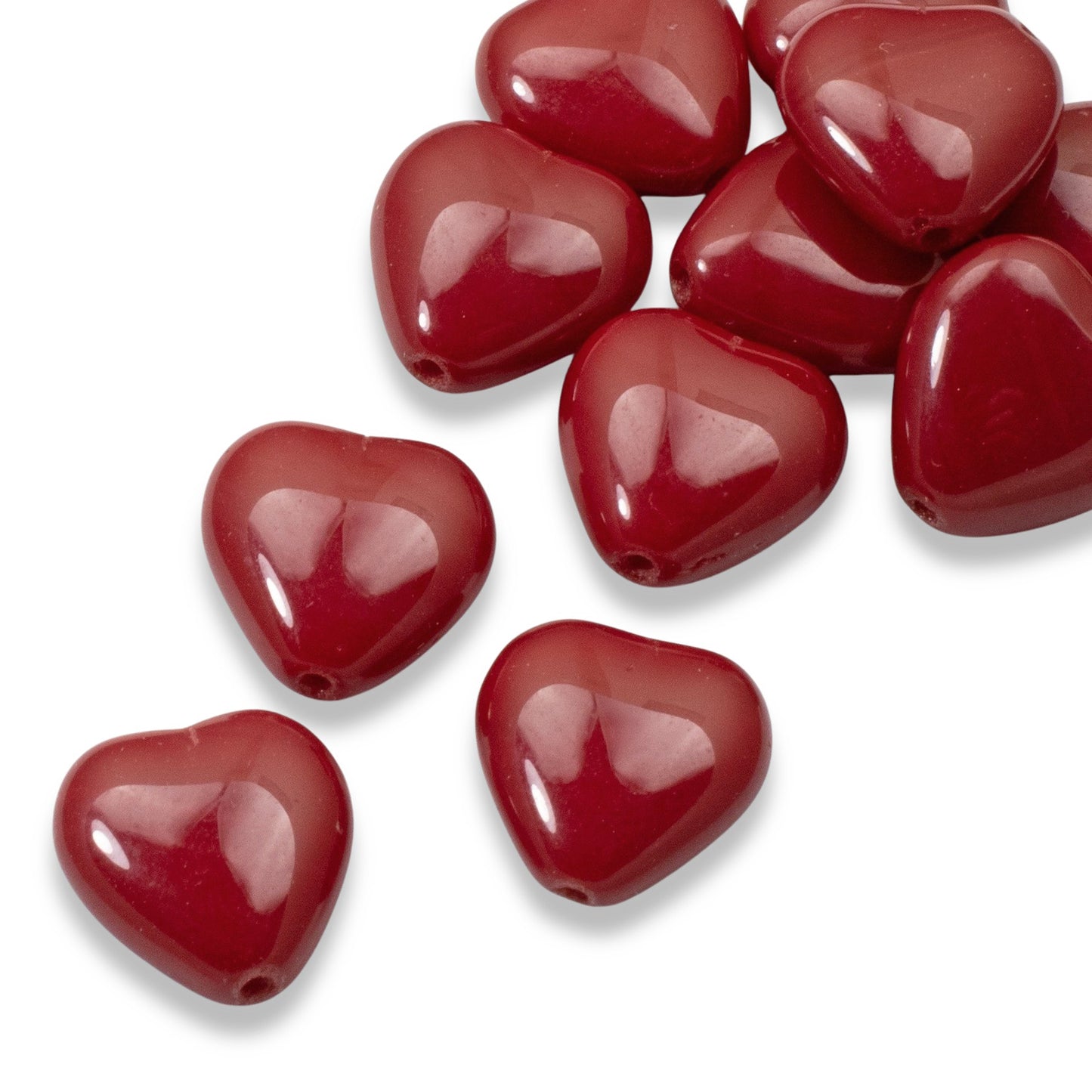 Crafted from quality Czech glass, each 12mm heart bead boasts a rich, opaque maroon red hue, offering a sophisticated and passionate element for your designs.
