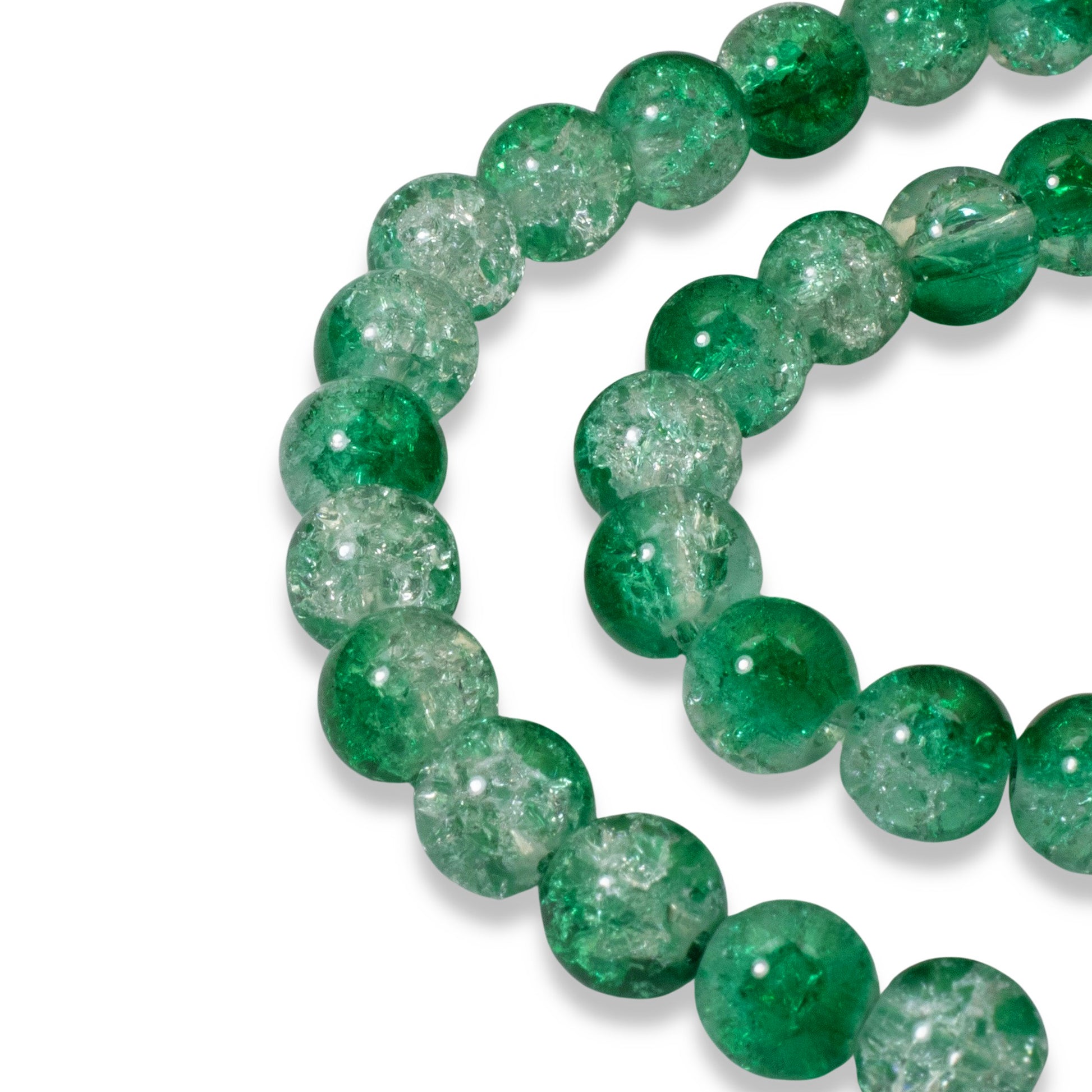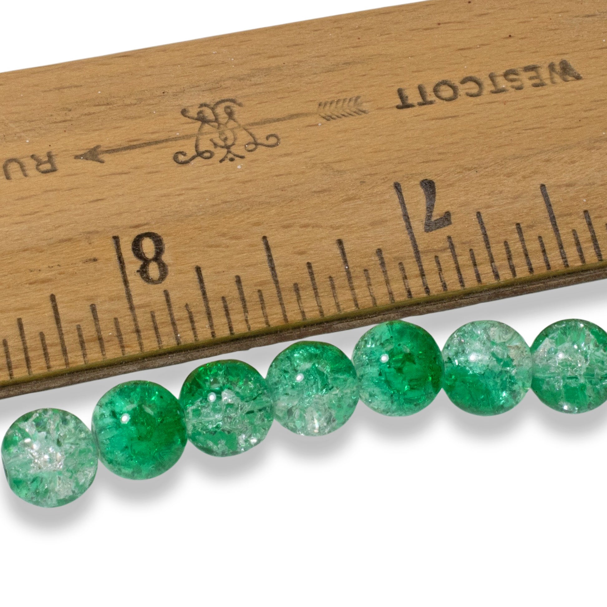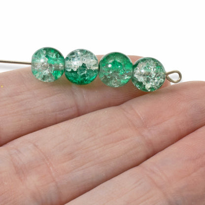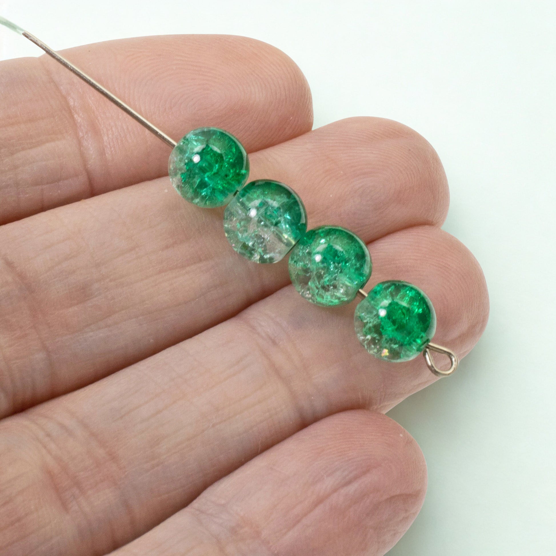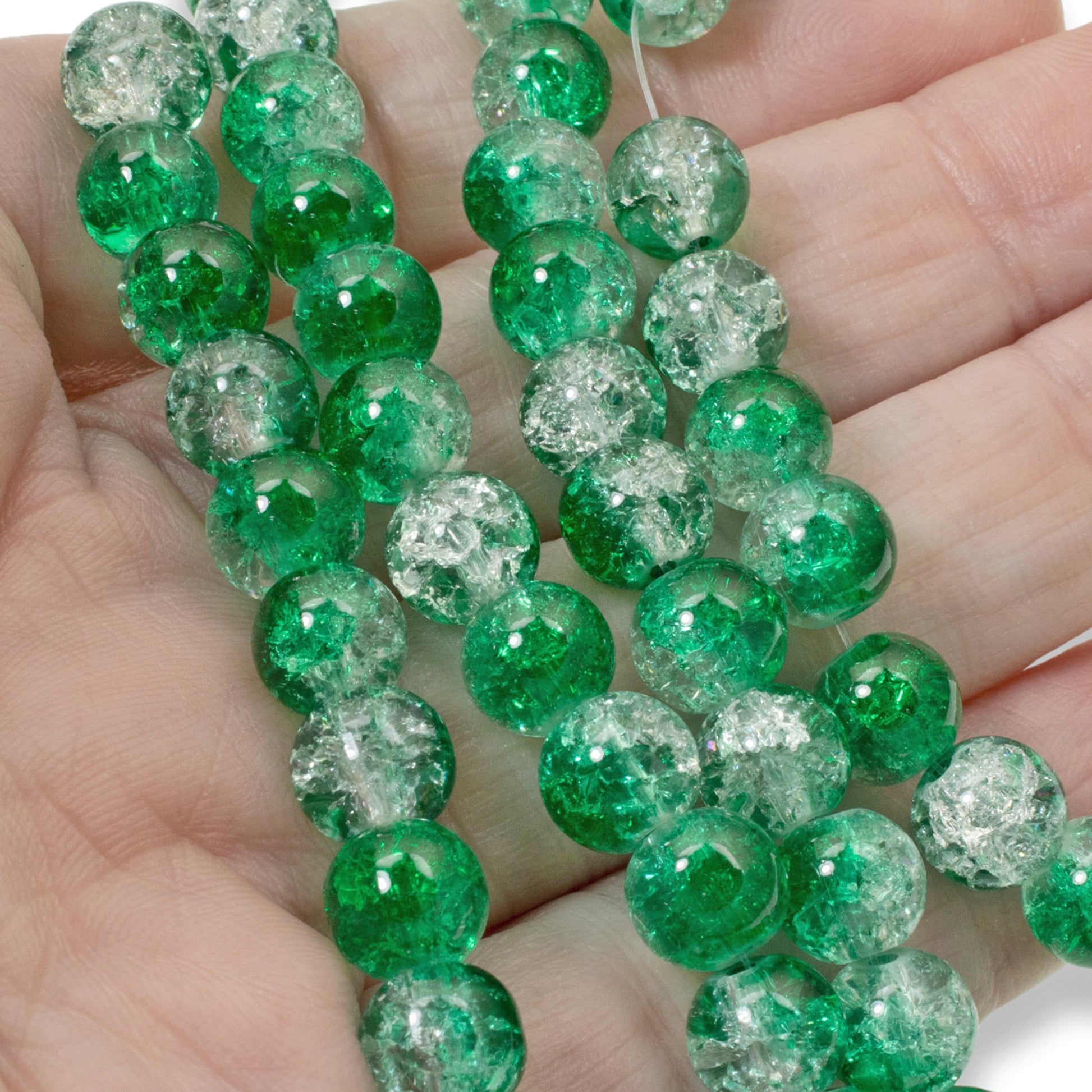 Christmas Green Clear Beads 50-Pack, 8mm Emerald Crackle Glass, Holiday Jewelry
