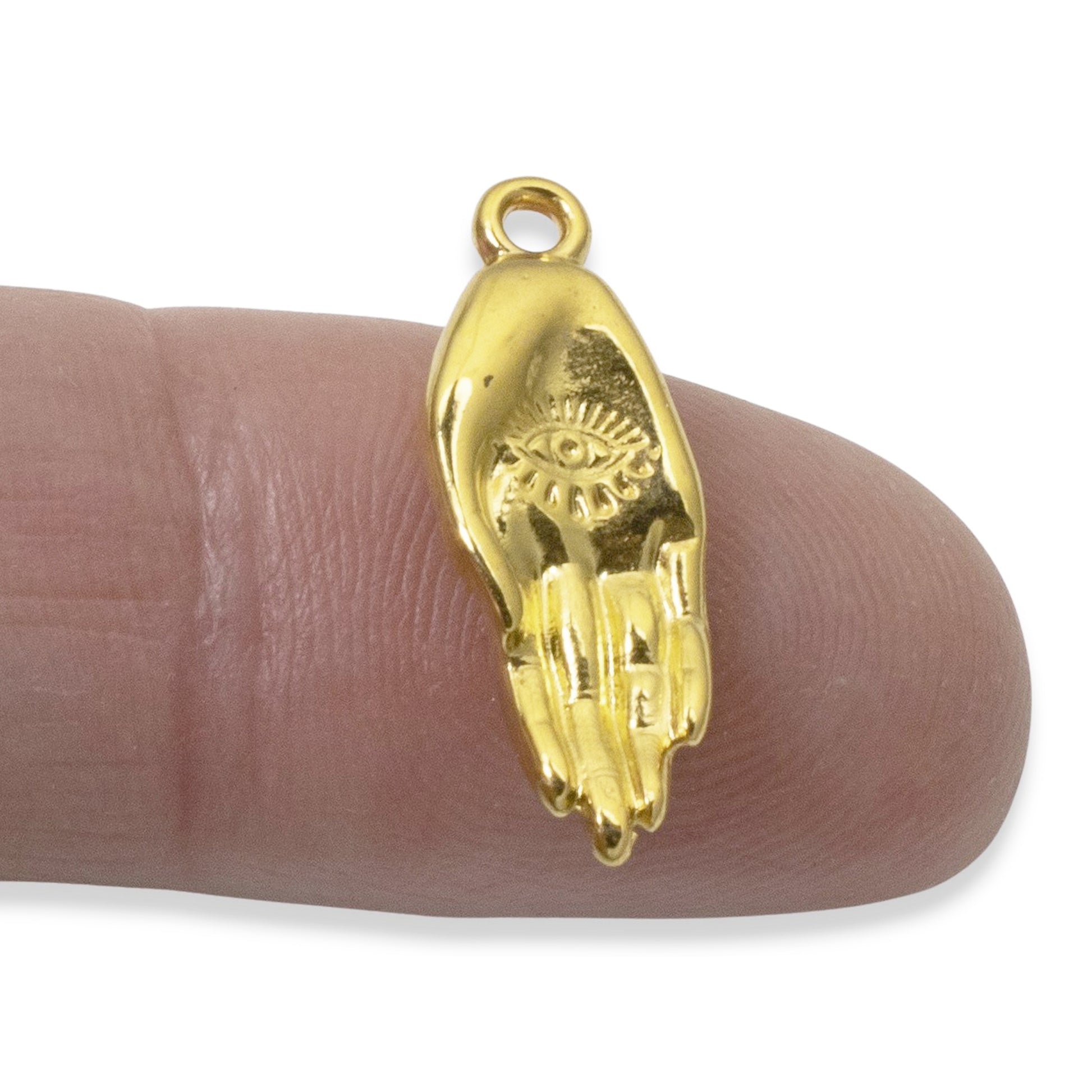 The evil eye hand symbol represents divine protection and spiritual awareness, warding off negative energy while attracting positive forces. These golden pendants embody ancient wisdom, making them ideal for crafting meaningful protection jewelry that resonates with spiritual seekers.