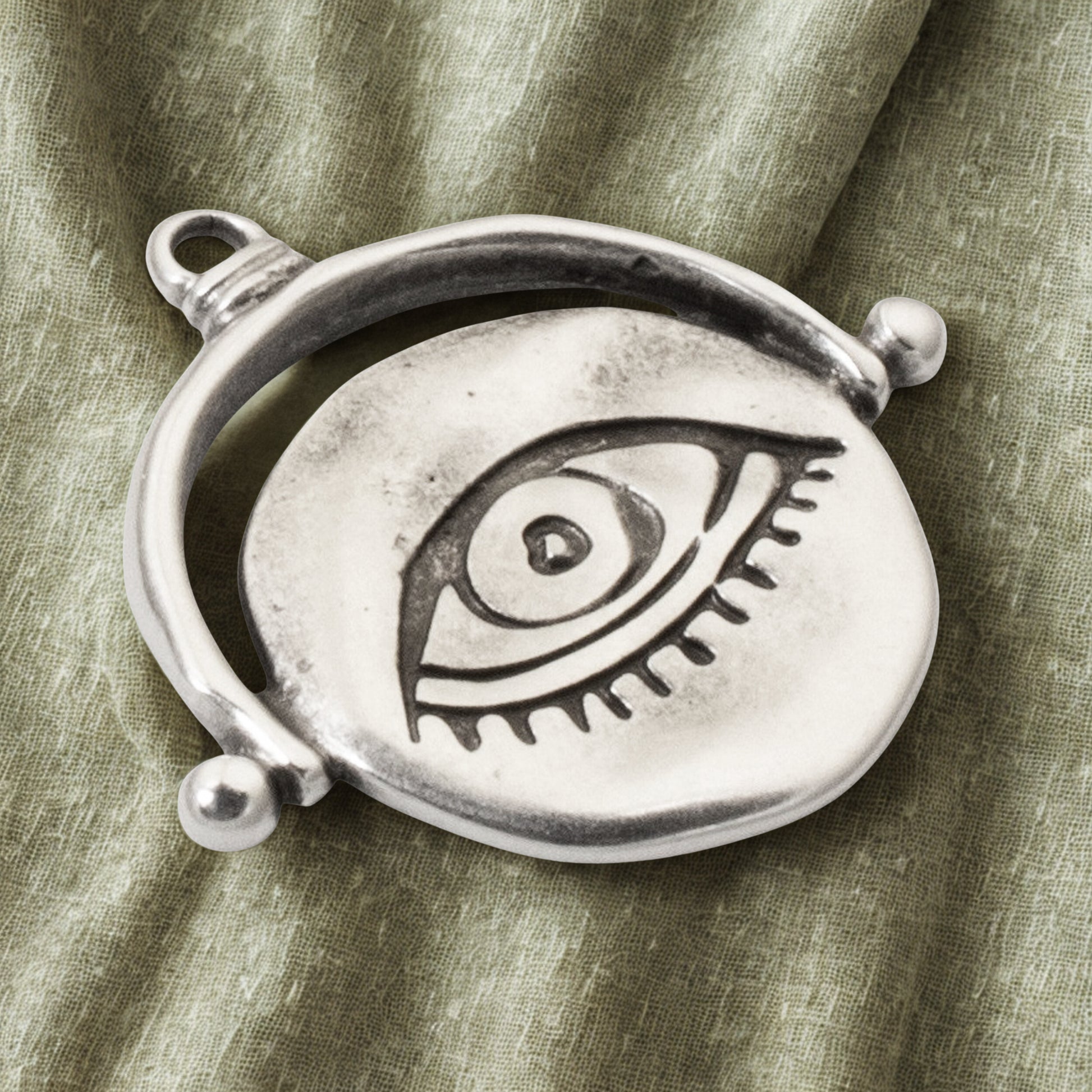 Embrace ancient protection and mystical beauty with this captivating European evil eye pendant! Featuring an organic, handcrafted texture that makes each piece uniquely yours, this powerful symbol brings centuries of protective tradition to your jewelry designs.