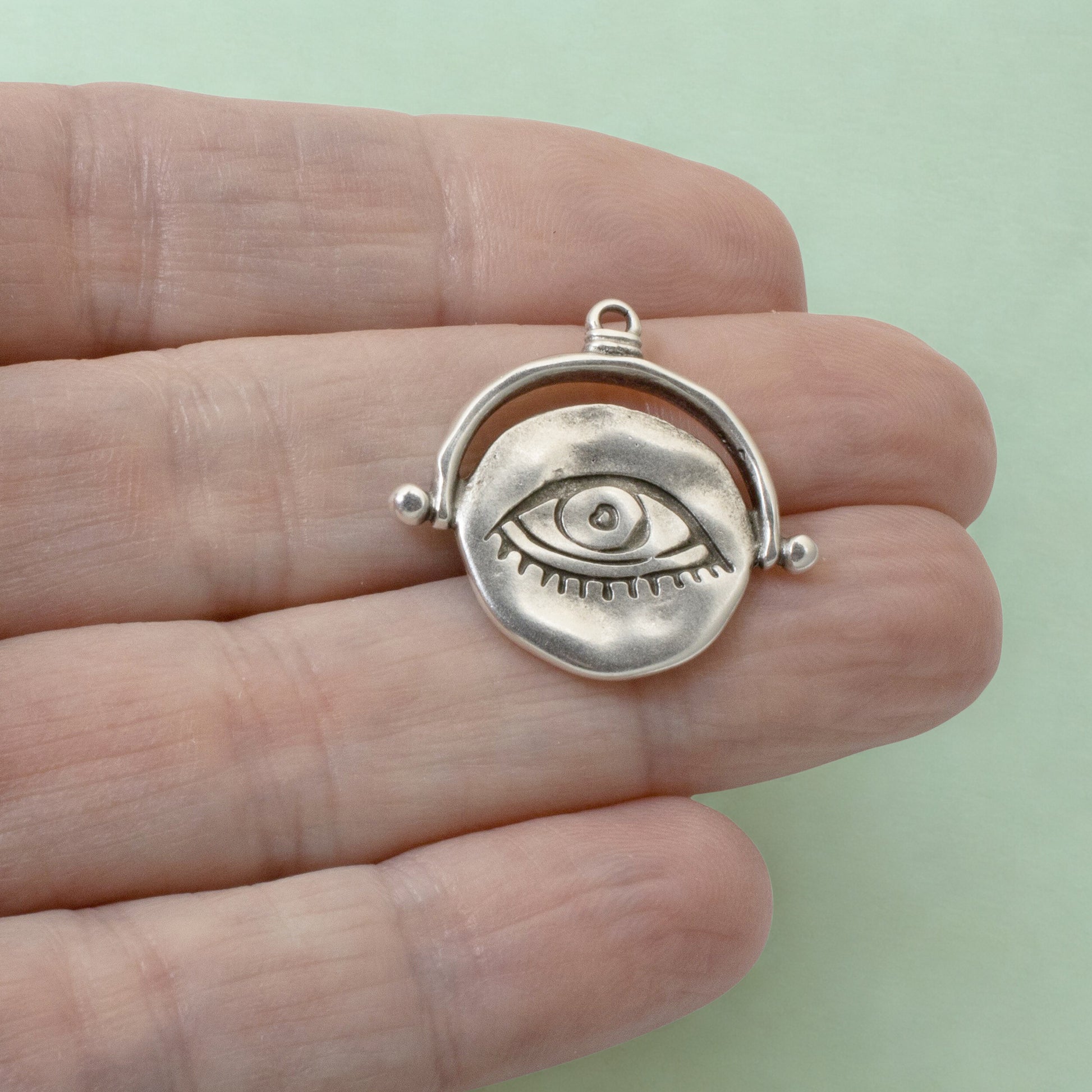 Evil Eye Pendant, 1Pc Sterling Silver Plated European Charm, Mystical Protection Symbol