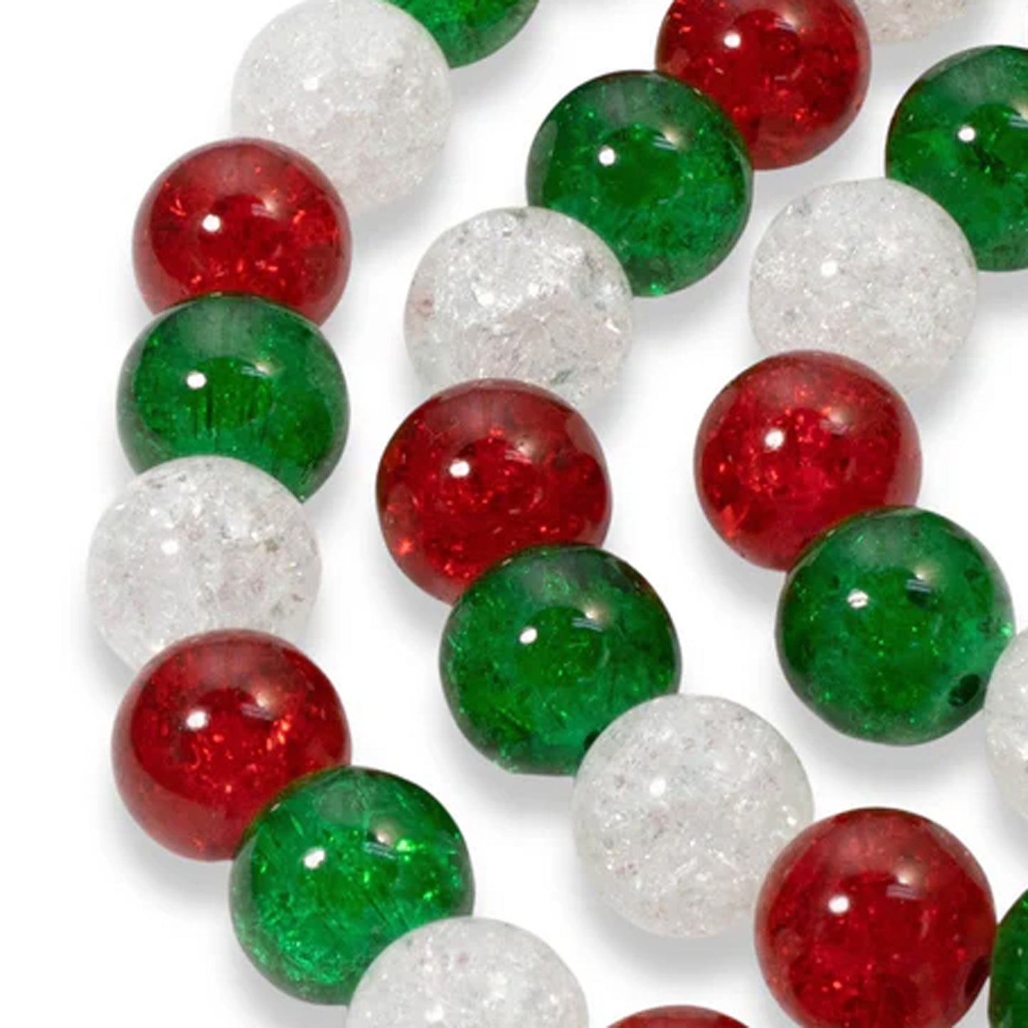 Transform your holiday creations into captivating masterpieces with this stunning collection of premium glass crackle beads! Each bead in this 30-pack showcases mesmerizing red, green, and clear tones with a unique shattered glass pattern that creates absolutely breathtaking light play.