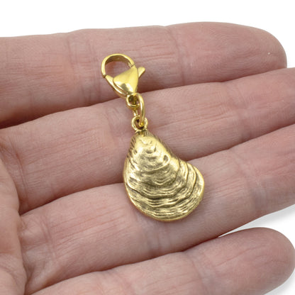 Gold Oyster Clip On Charm, Beach Lover Gift, Coastal Bag Charm Accessory