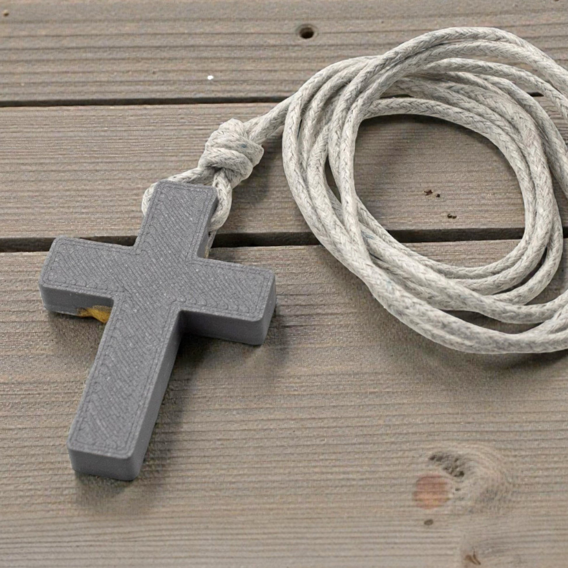 This handcrafted gray cross features a bold gold "crack" running through it, symbolizing the beauty found in repair and resilience. It's a wearable reminder that you are more beautiful for having been broken.