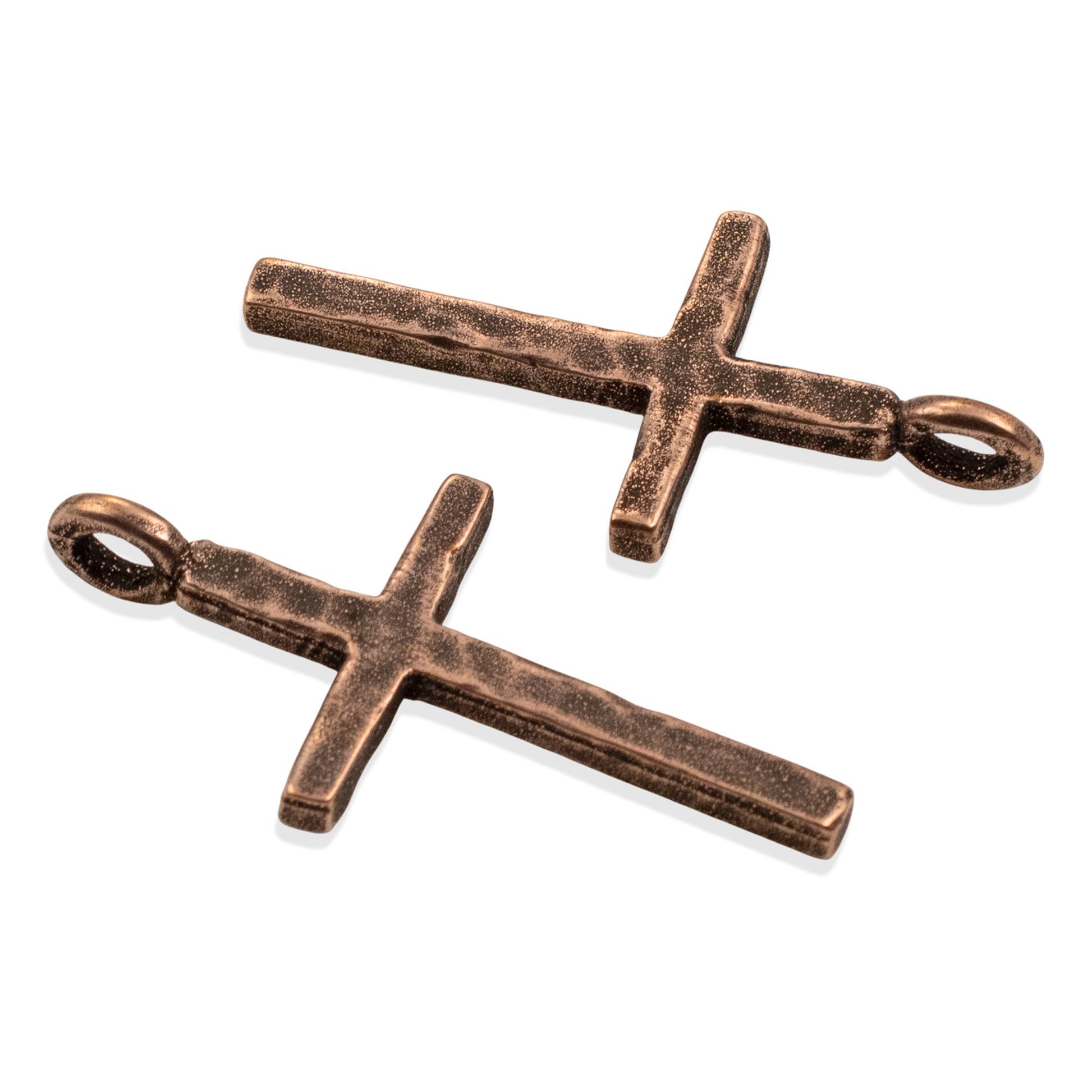 Large Hammered Cross Pendants: 2-Pc Antique Copper-Plated 34mm Religious Charms