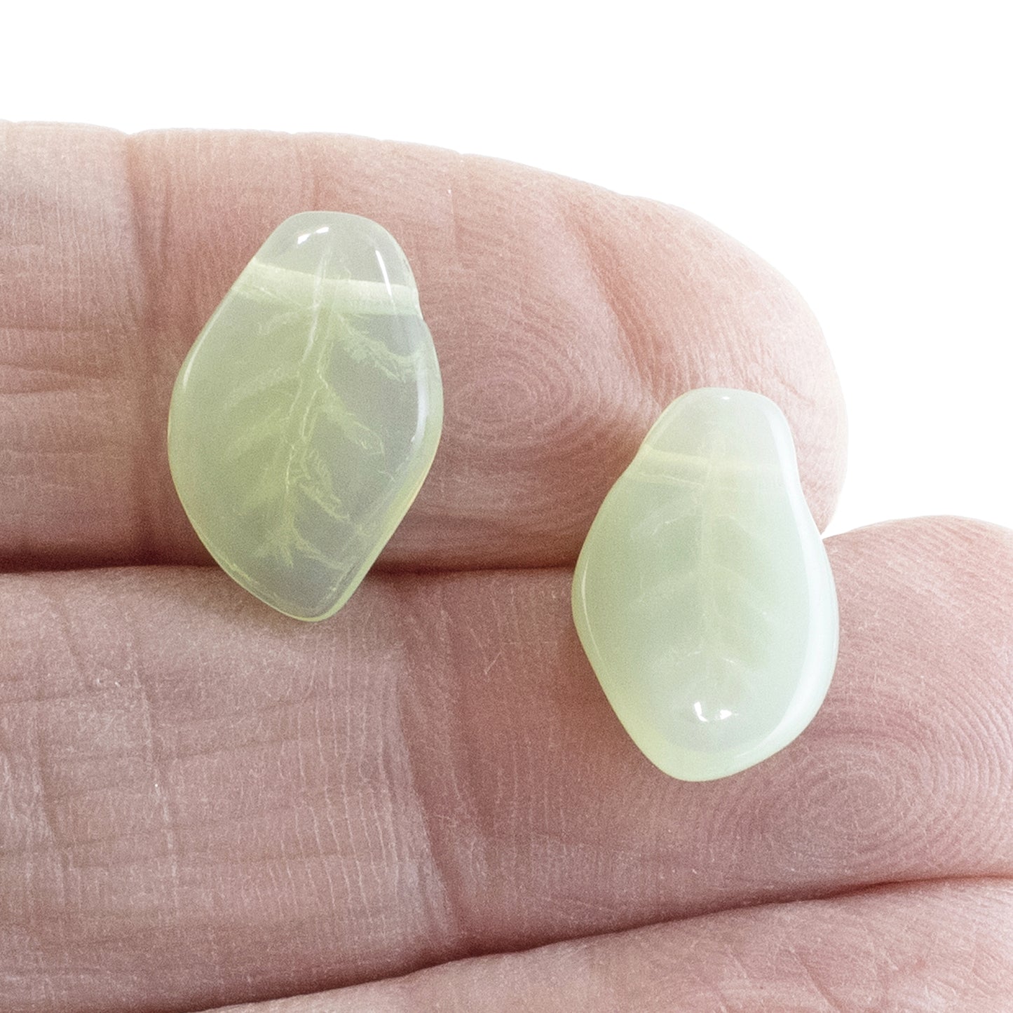 25-Pack Mint Green Opal Leaf Beads - Czech Glass Nature-Inspired Jewelry Making Supplies
