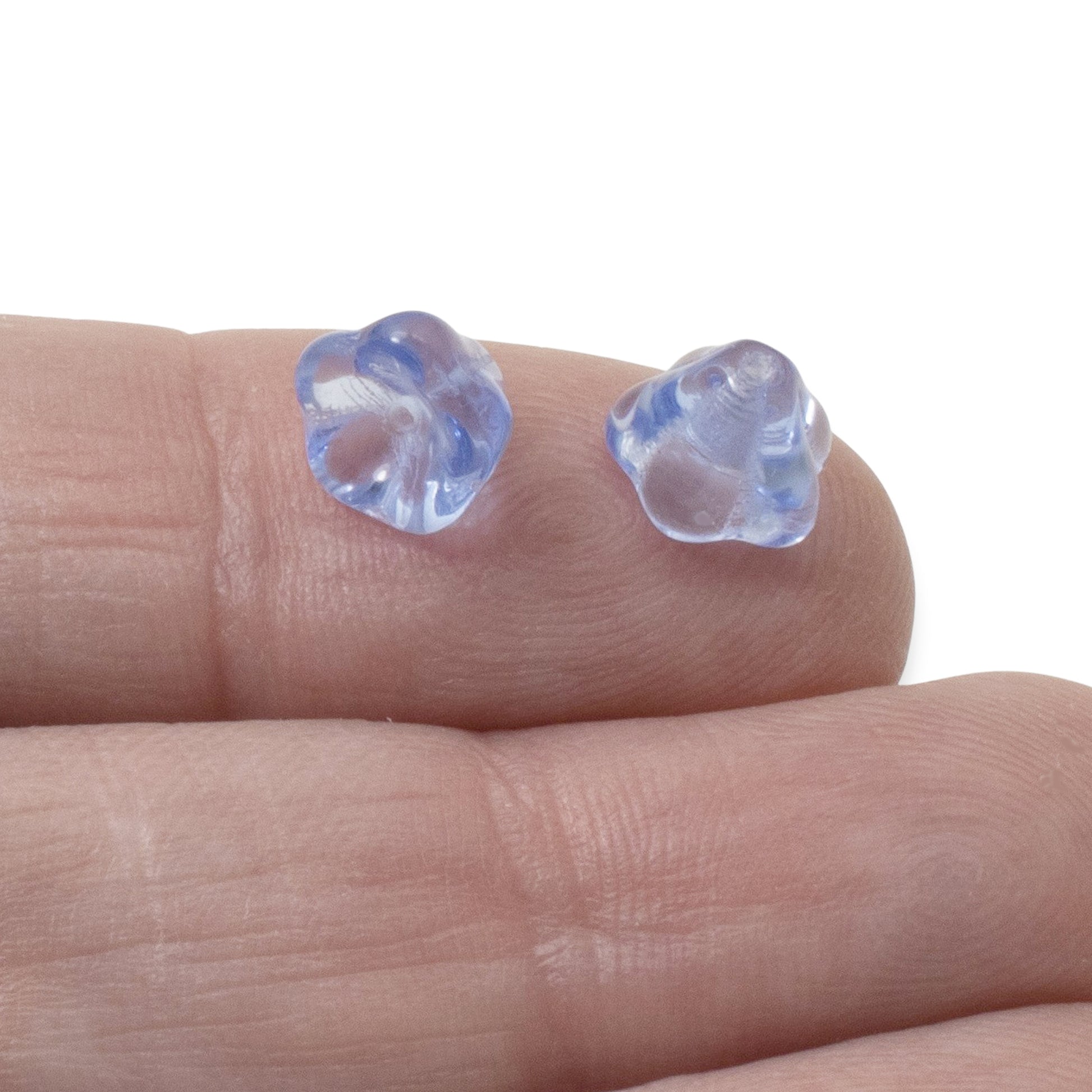 Light Sapphire Blue Bell Flower Beads, 25-Pack Czech Glass 6x8mm, Spring Crafts