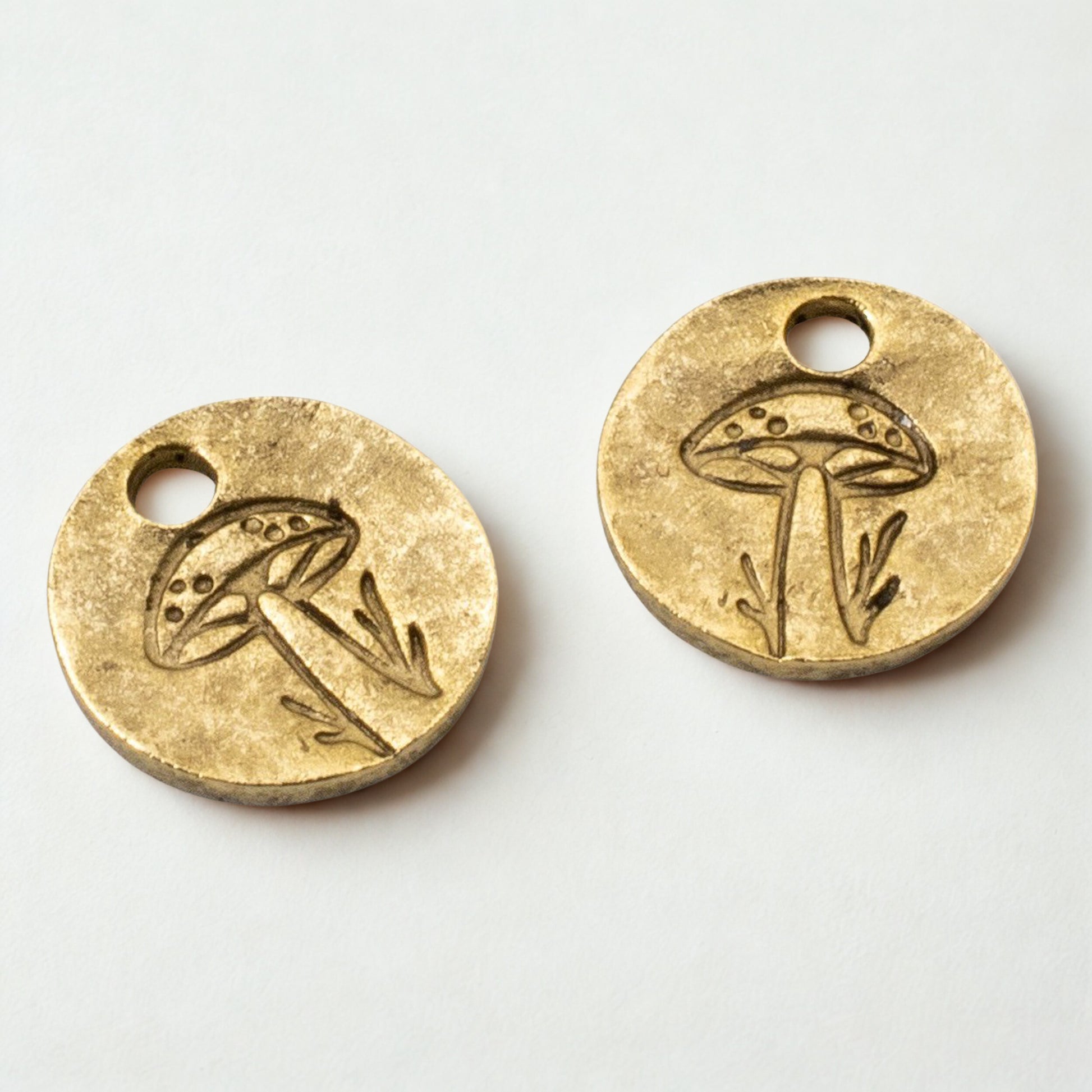 These aren't just charms - they're tiny golden tokens of autumn magic and forest abundance. Each mushroom captures the warm, rich energy of harvest season discoveries, bringing that special moment of finding woodland treasures bathed in golden sunlight to your jewelry designs.