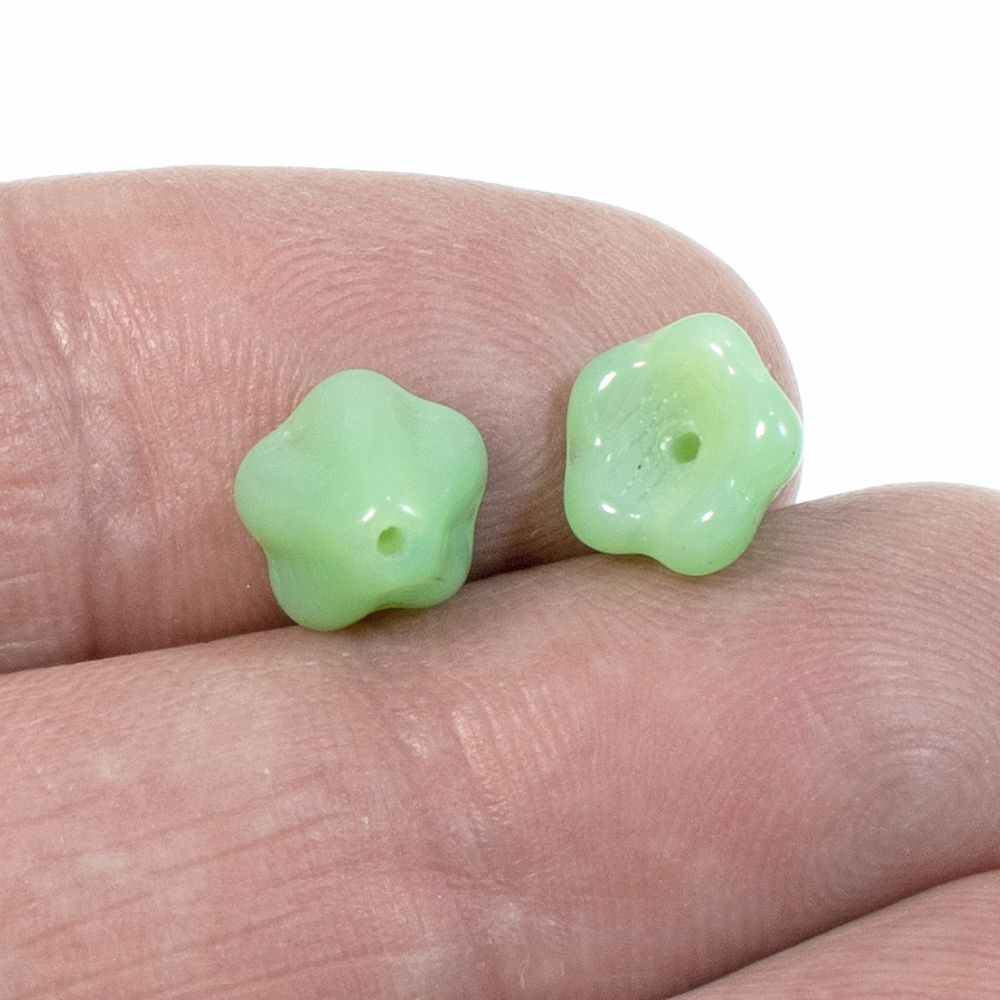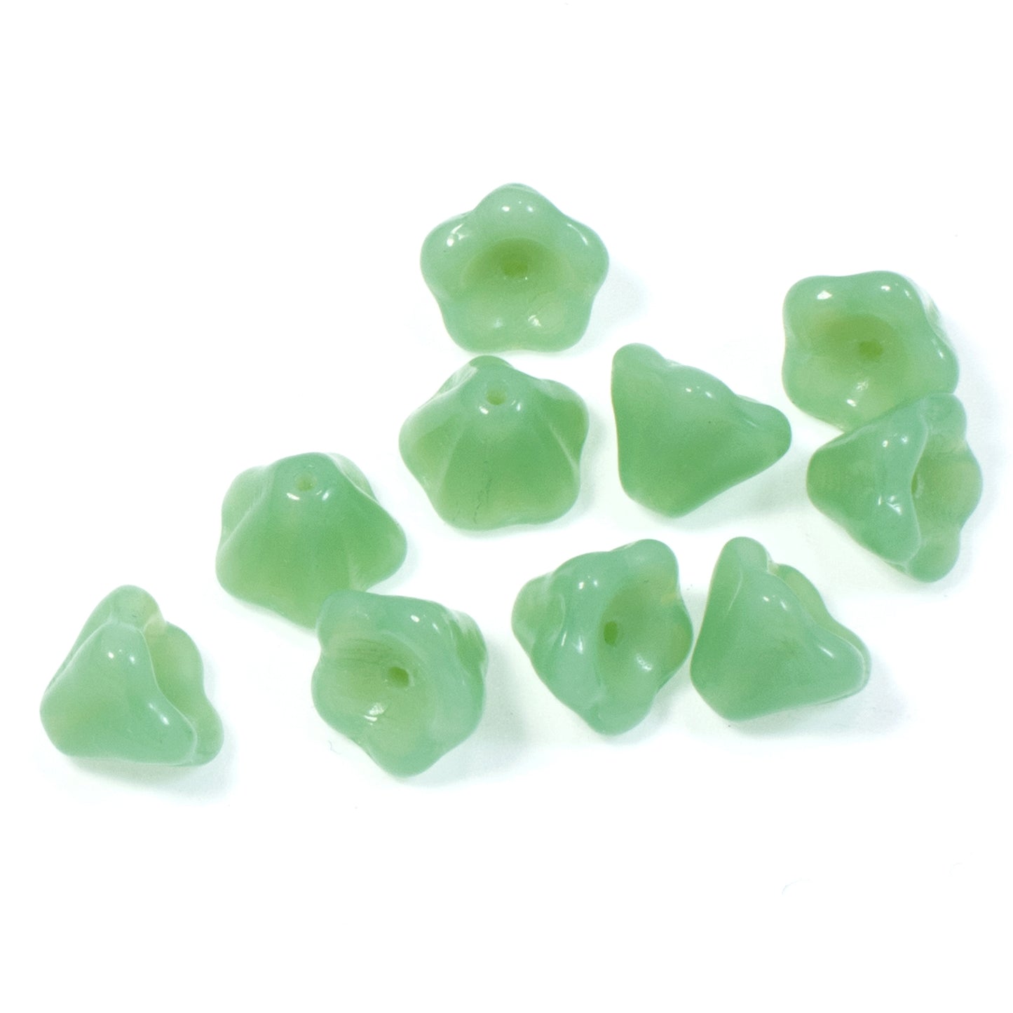 25 Opaque Jade Green Czech Glass Bell Flower Beads - 6x8mm for Jewelry Making