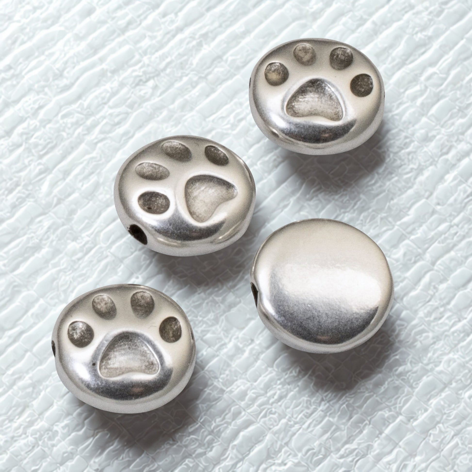 Paw Print Beads 4-Pack Silver Plated Pet Memorial Dog Cat Jewelry Making 9mm